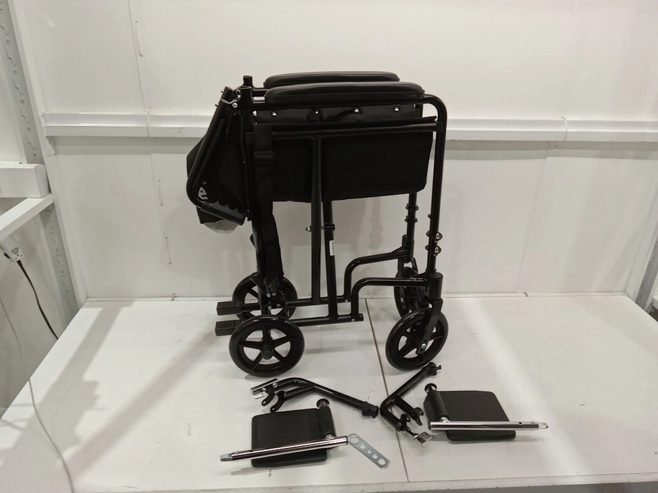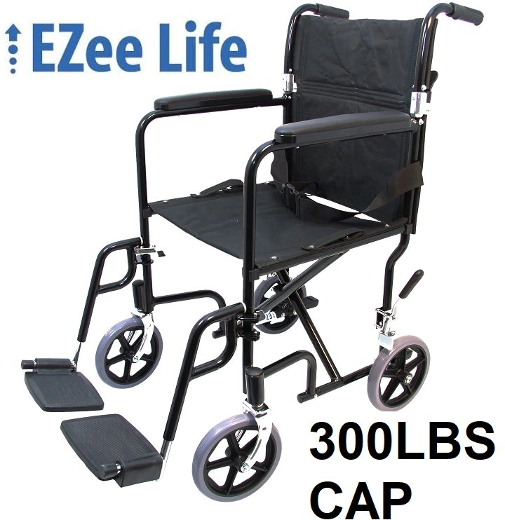 This Ezee Life transport chair is in new condition. It's a 19-inch model with a 300lbs capacity, perfect for easy and safe mobility. The chair folds for convenient storage and transport. It's lightweight yet sturdy, making it an ideal aid for getting around. * 19-inch seat width * 300lbs weight capacity * Folds for storage * Lightweight design It's ready to roll and assist you or your loved ones. If you see this ad, the transport chair is still available!