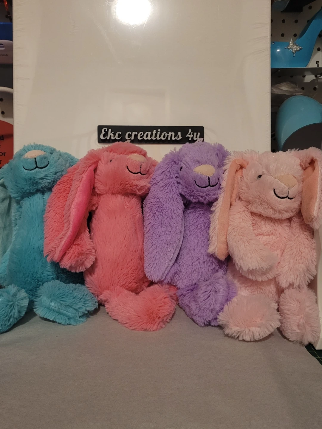 These bunnies are great for Easter, birthdays, christening and more.... I can personalize the ears with name , year, date or birth info. $12 each includes personalization and wrapping