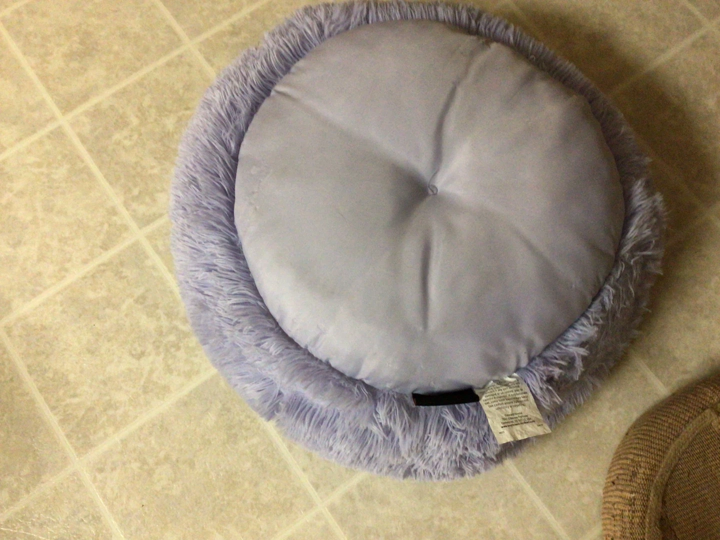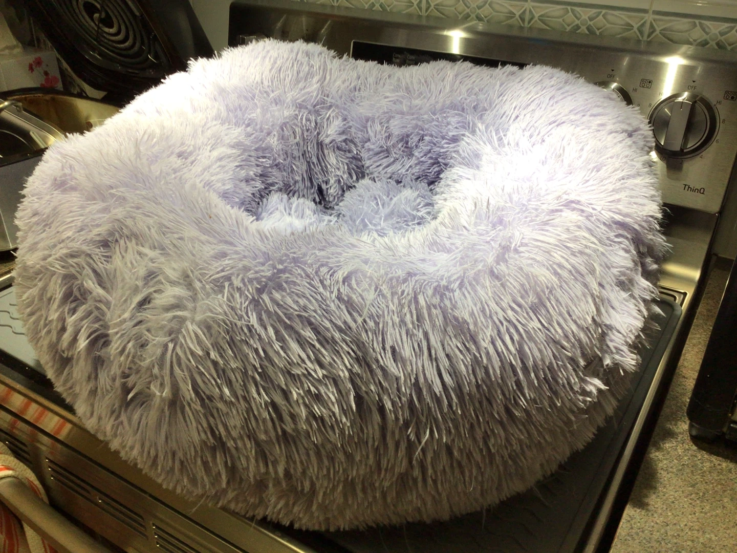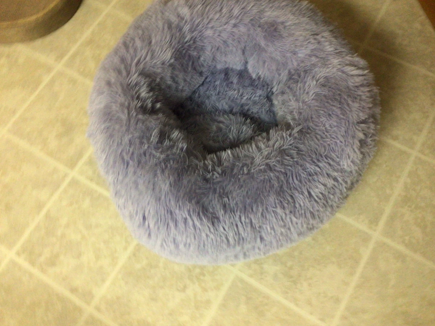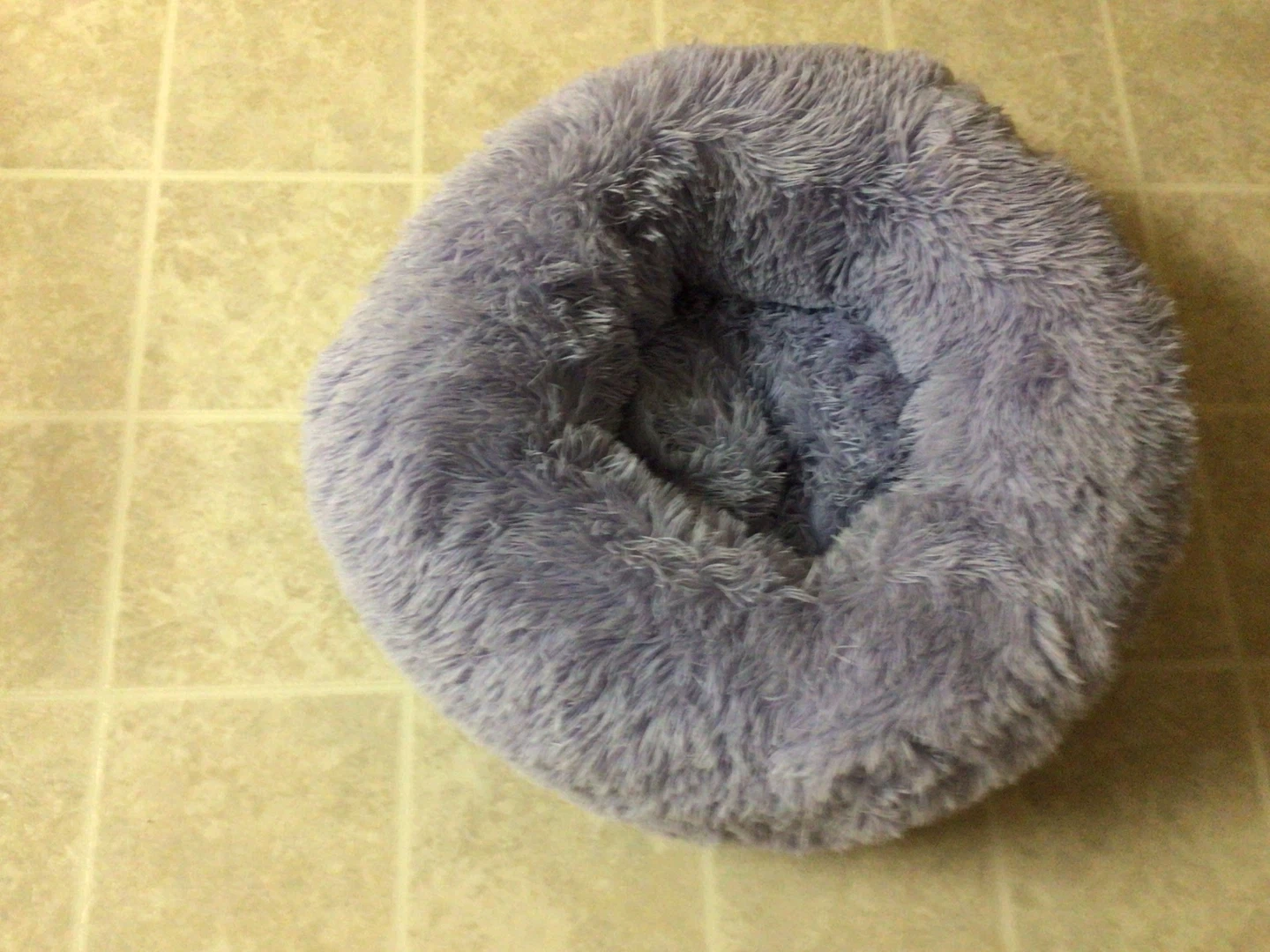 Super soft, round pet bed with plush, long-pile faux fur. It's a cozy spot for your furry friend to curl up. Made with a durable, easy-clean material. 24 inches