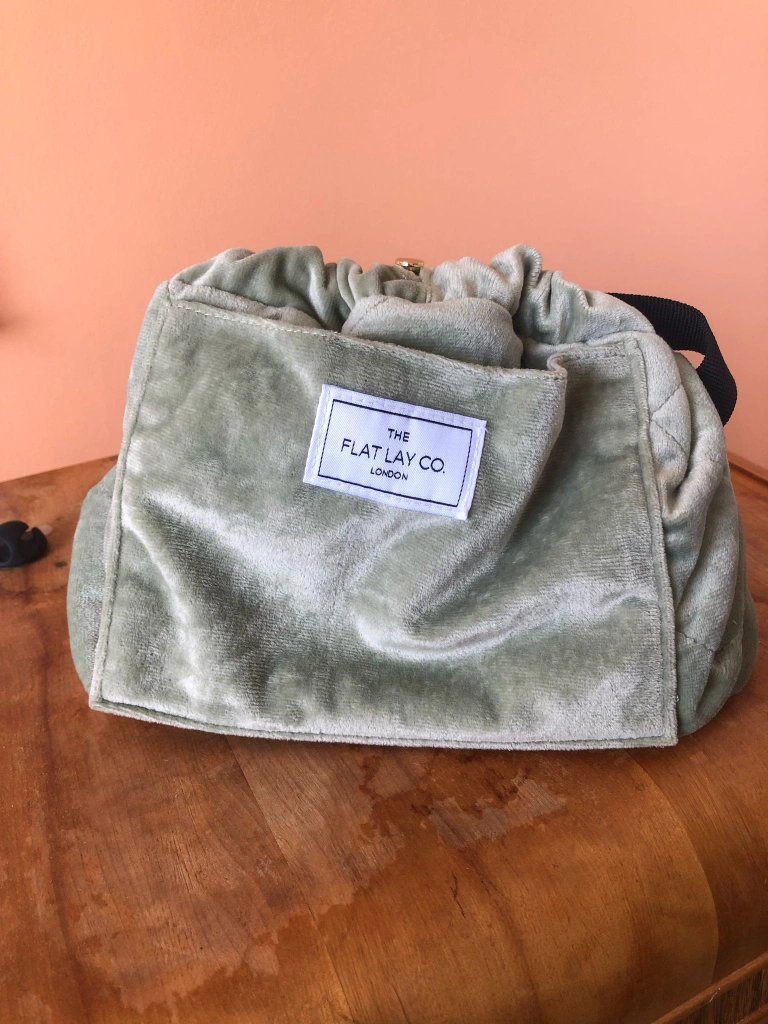 Drawstring Flat Lay Makeup Bag - Sage Green Velvet
