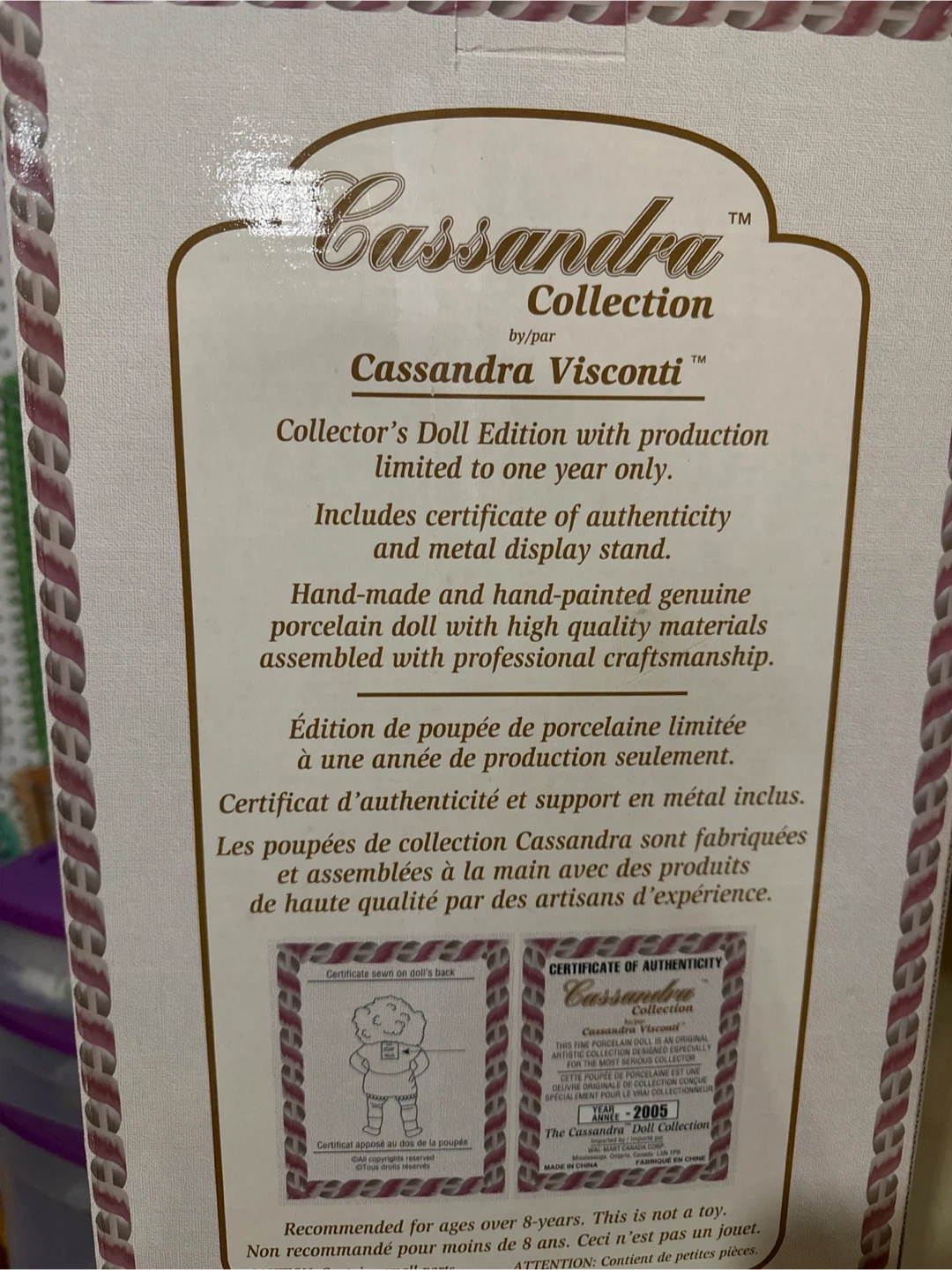 Collector's doll by Cassandra Visconti, part of the 2005 limited edition. It's a hand-made porcelain doll with high-quality materials and craftsmanship. Comes in its original box.l and never been opened.