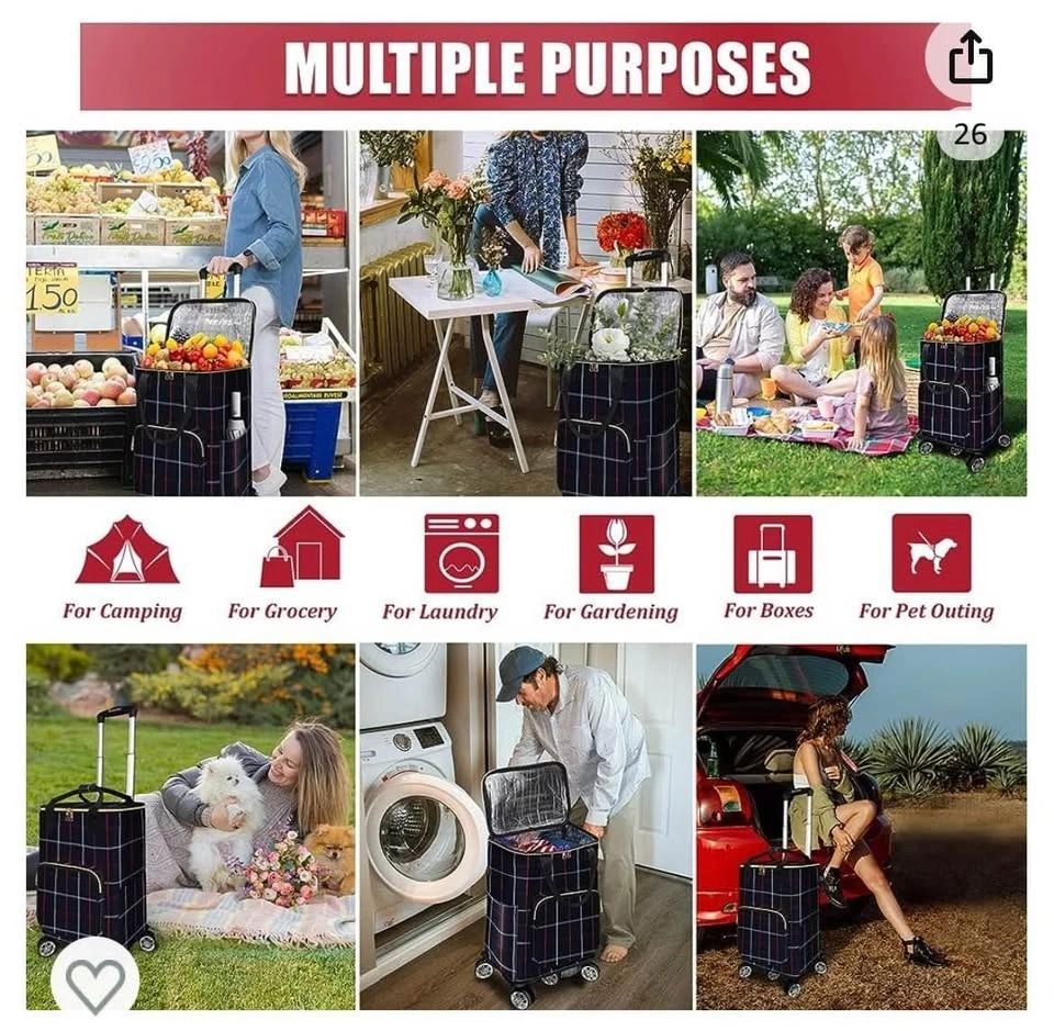 Multi-Function: It can be used as a shopping cart, grocery cart, utility cart, foldable cart, and overall exceptional cart on wheels. Detachable design, remove the bag and it becomes a lightweight dolly.