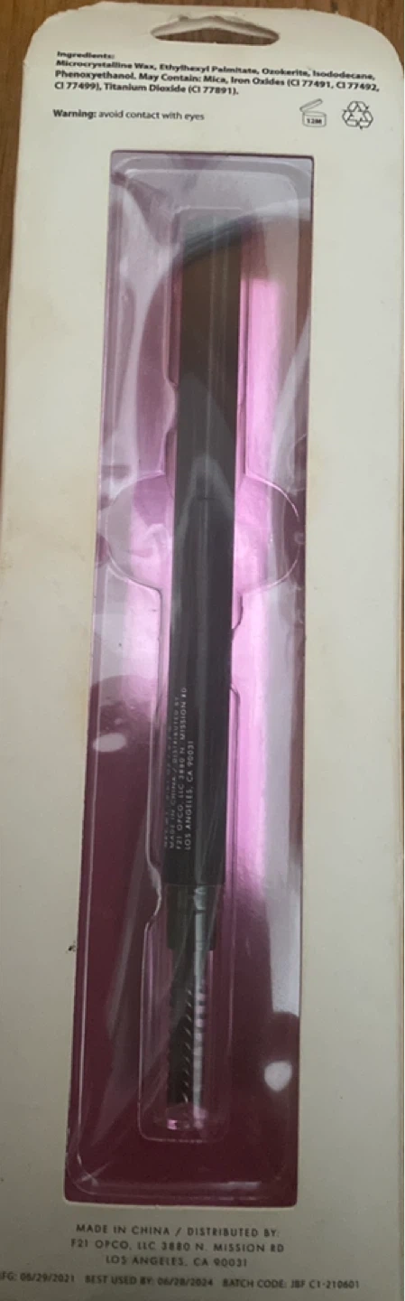 This F21 Perfect Brows Angled Eyebrow Pencil comes in a convenient size for on-the-go touch-ups. It's formulated with microcrystalline wax and ethylhexyl palmitate for smooth application. Net wt. 0.01 oz / 0.3 g. The shade color is blonde.