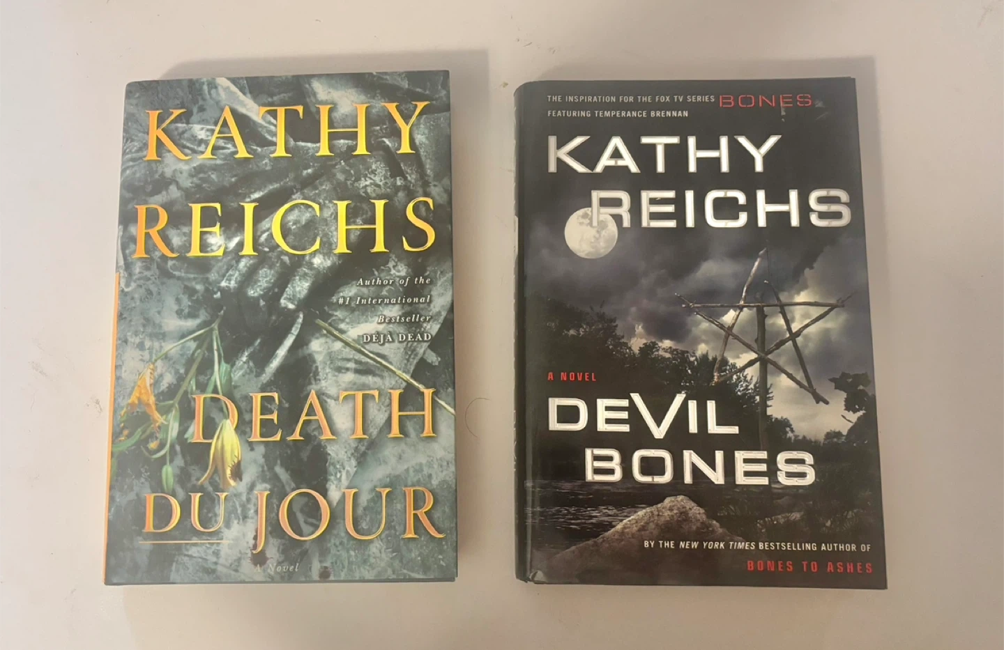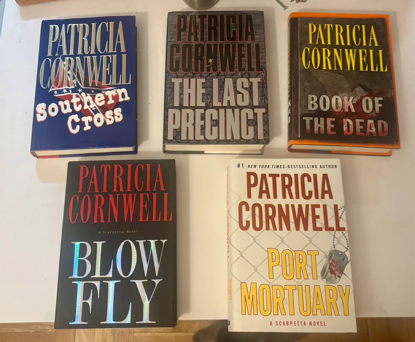 This lot includes multiple paperback and hardcover books by various bestselling authors. Authors featured are Kathy Reichs, Patricia Cornwell, Debbie Macomber, Emily Giffin, Sidney Sheldon, and Gabor Maté. Some of the Authors' names and book titles are visible in the photos.