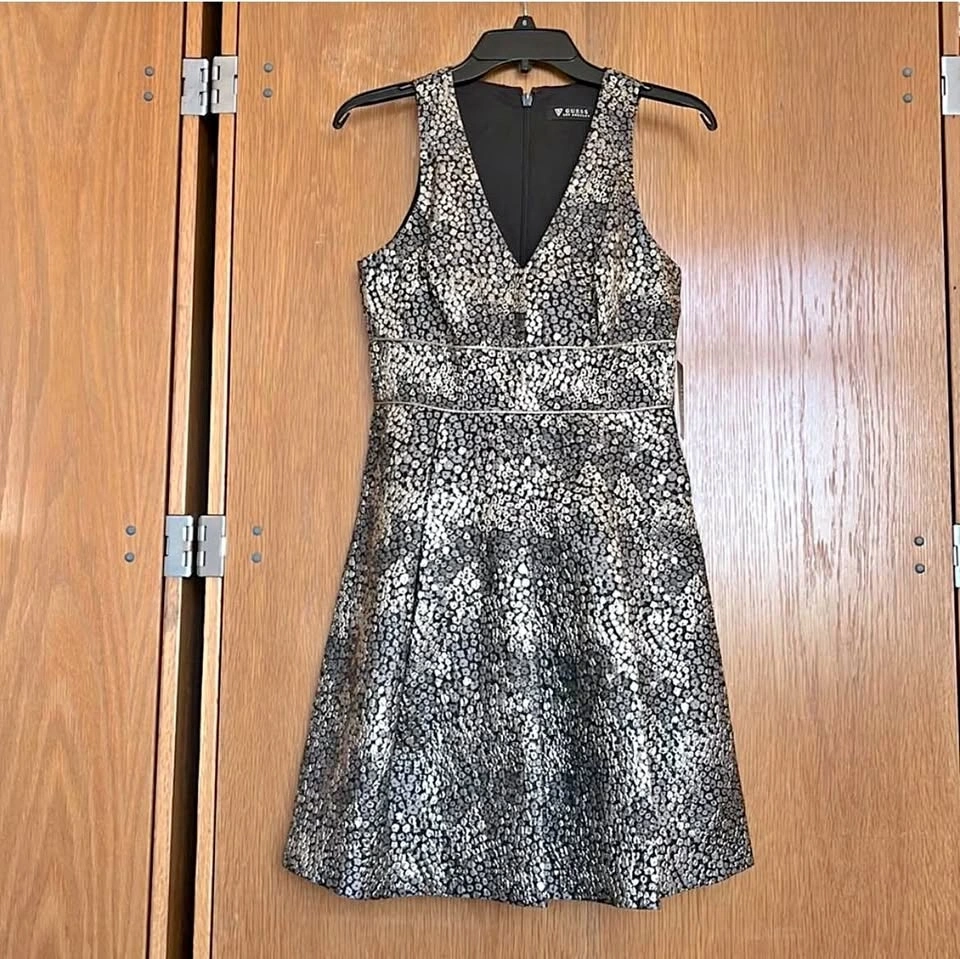 1 / 41 / 4Buy & SellGUESS Golden dressGUESS Golden dress$45Beautiful Gold dress from Guess. New with Tags. Nice V neckline, pretty A-line dress with pockets. Size 2.WHERE TO MEETCheck LocationView MapSELLERJulieMorningside Heights100 reviews0 chats·0 favorites·0 viewsSEND CHAT TO SELLERHi Julie! I’m interested in your listing.Hi Julie! I’m interested in your listing.Get the Karrot app to chatSign In to chat