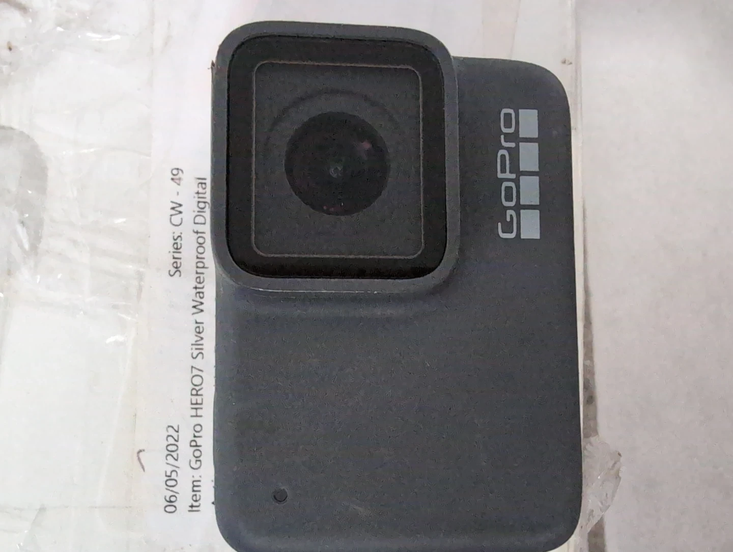 This is a GoPro HERO7 Silver action camera. It's waterproof and a digital model. It captures video and photos for your adventures.
