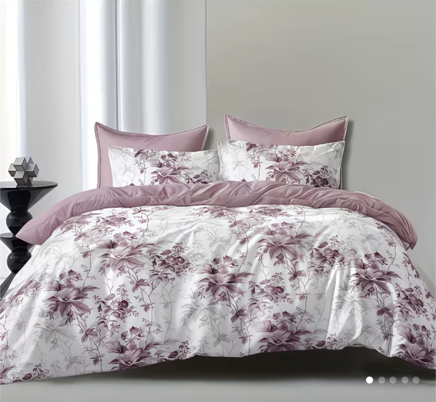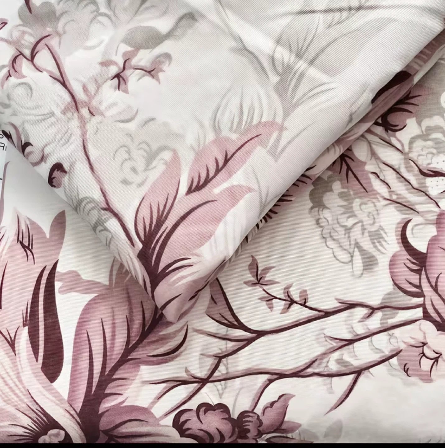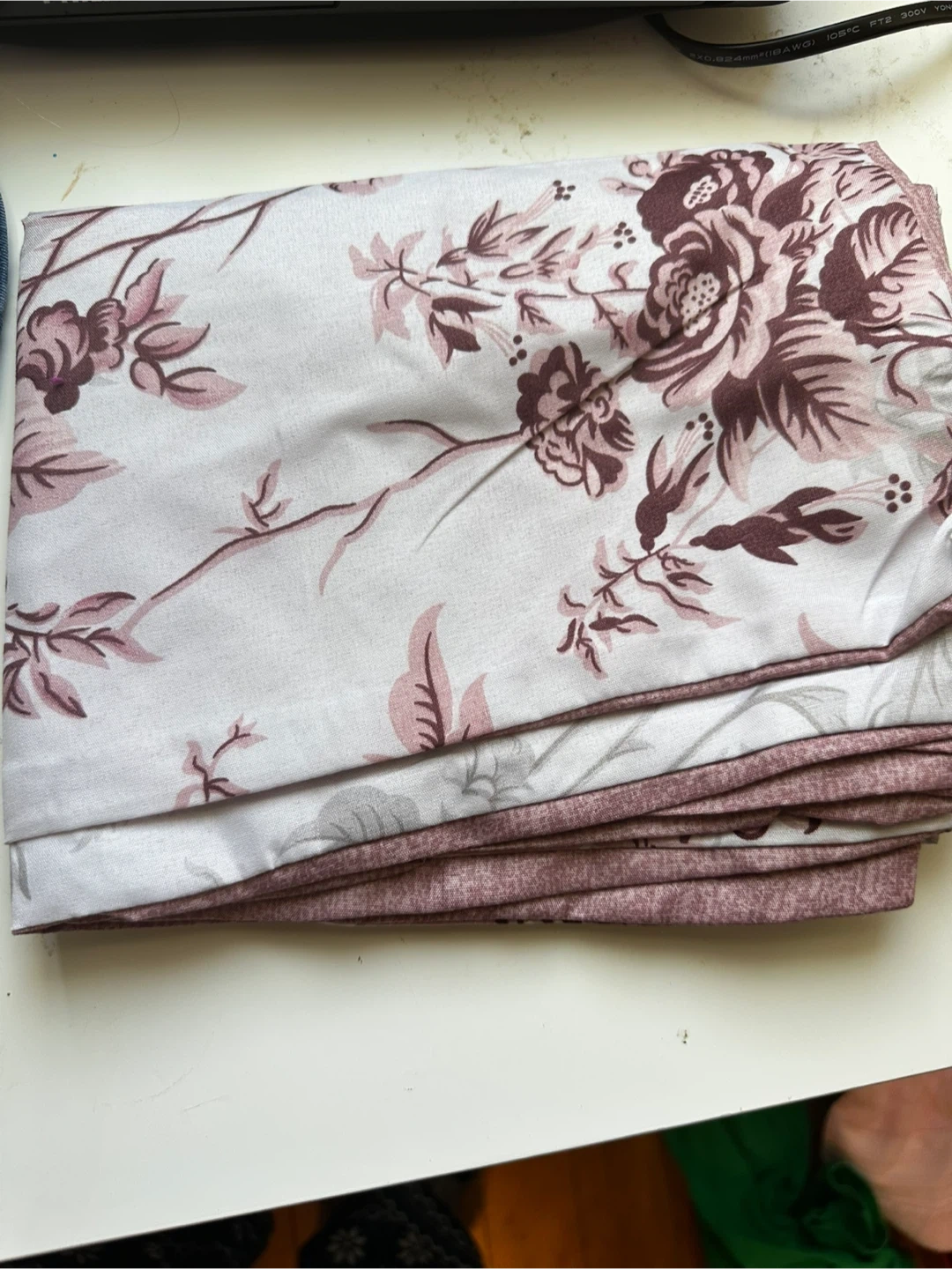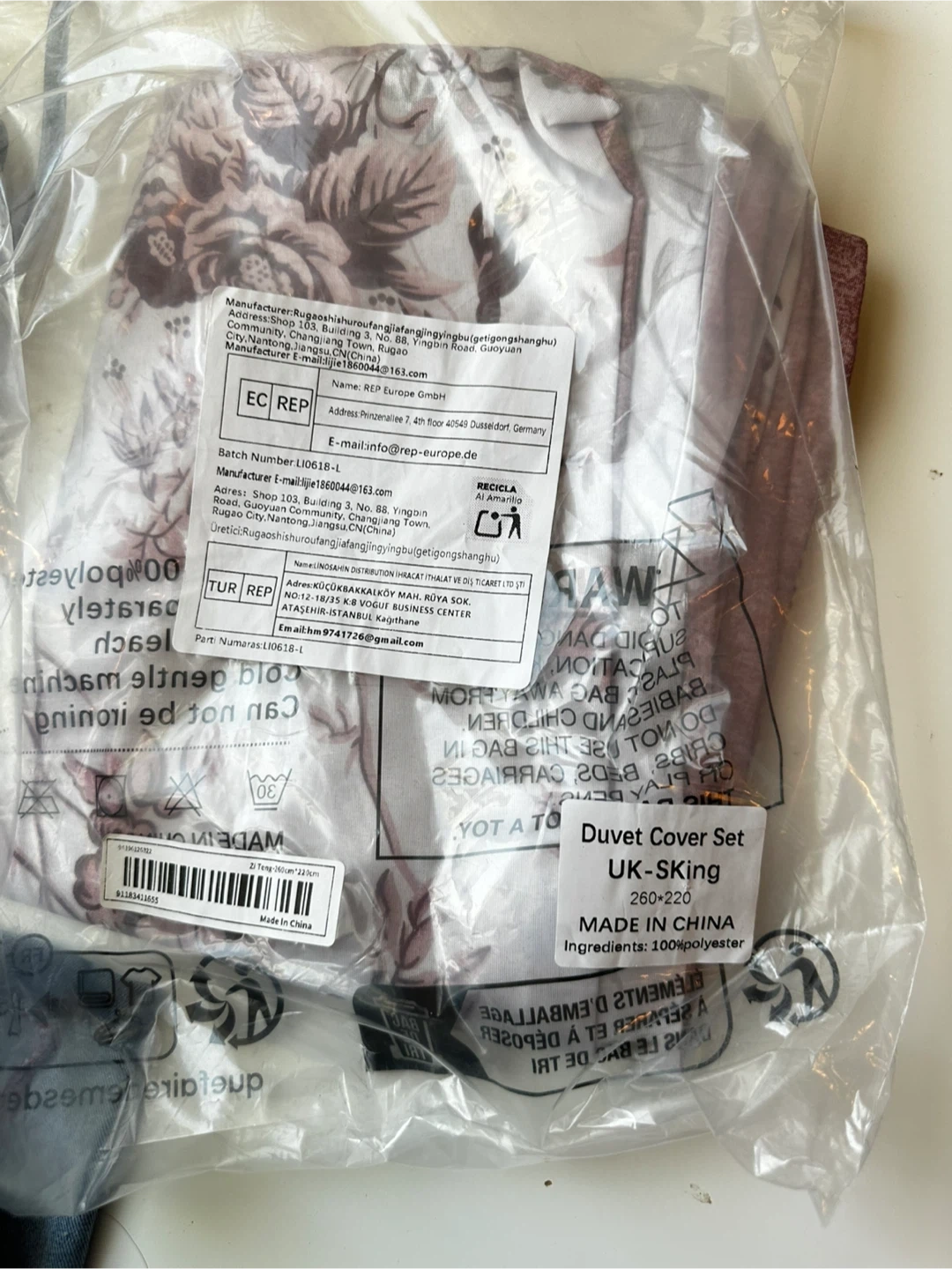 Duvet cover set with a floral pattern. Made of 100% polyester. Includes one duvet cover and pillowcases. It's a king-size set.