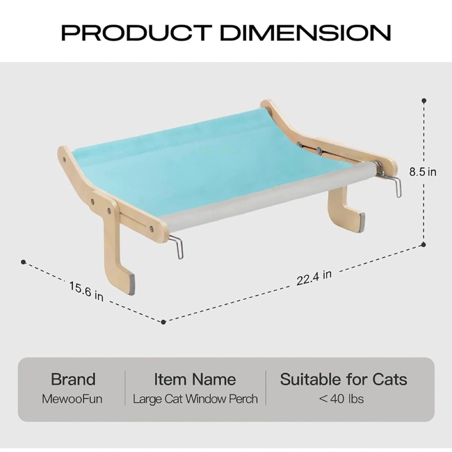 MEWOOFUN Cat Window Habitat Lounger Mount Hammock Window Seat Bed Frame for Indoor Cats No Drilling Required No Suction Cups Required (Large Blue/Gray)