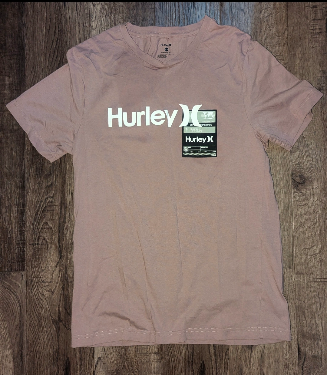 NEW light pink short-sleeve t-shirt featuring the Hurley logo on the front of the T-shirt, with a blank back. flawless condition.