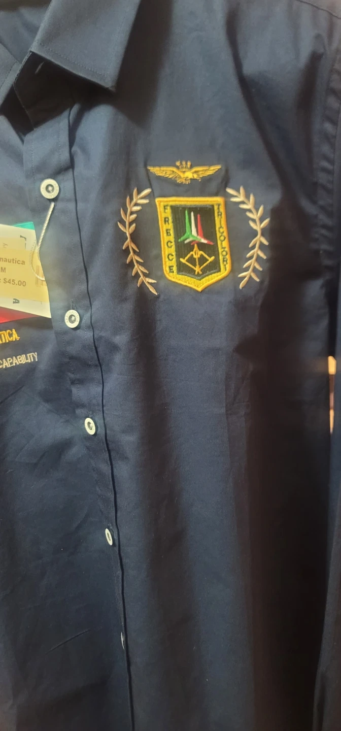 Selling an Aeronautica Militare shirt in size M. It's a stylish navy blue colour with some cool embroidered detailing. Originally priced at $45.00. Great for casual / formal wear!