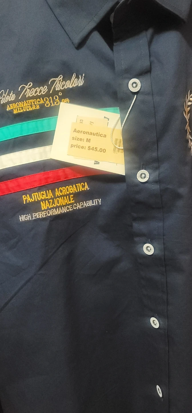 Selling an Aeronautica Militare shirt in size M. It's a stylish navy blue colour with some cool embroidered detailing. Originally priced at $45.00. Great for casual / formal wear!