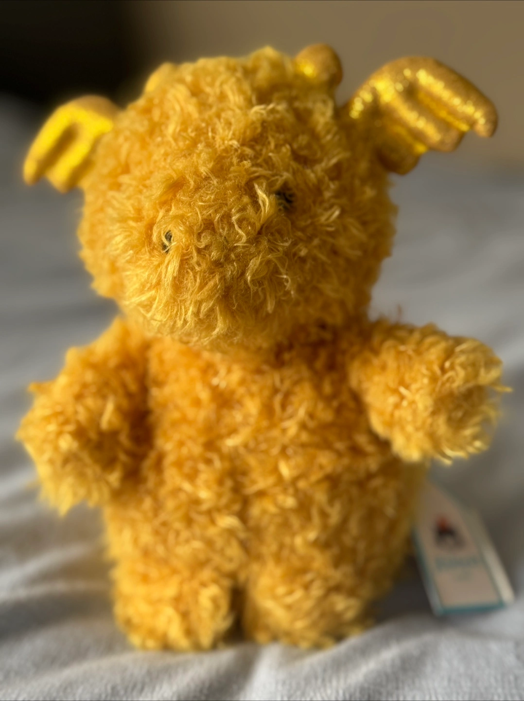 Orange Fuzzy Dragon Plush Toy with Gold Wings