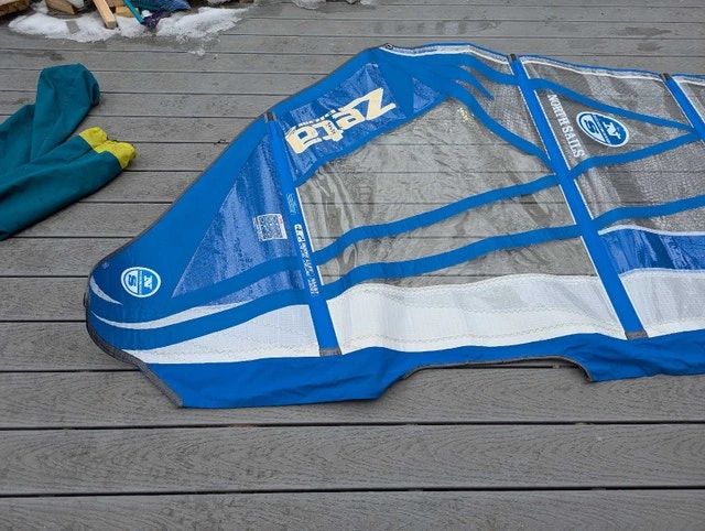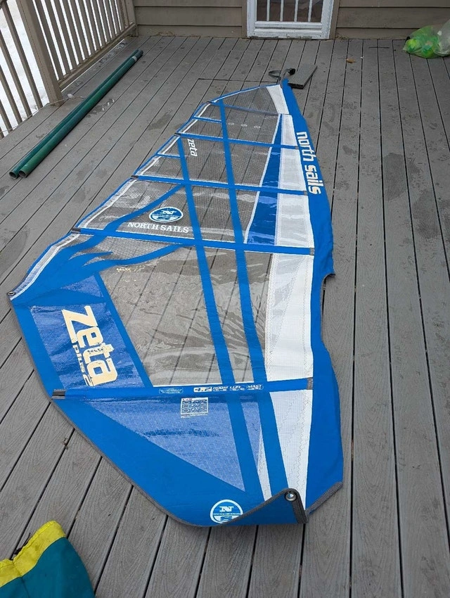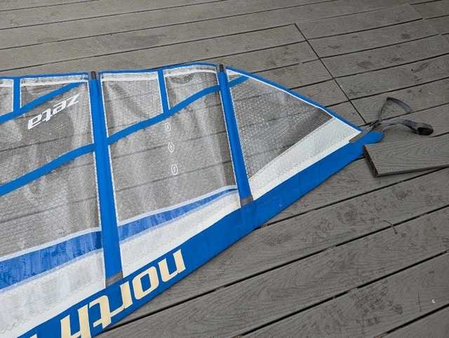 Excellent condition on this older but classic North Zeta 4.2m windsurfing sail. Built with legendary North sails quality. A very durable, high performance sail from the golden age of windsurfing. Great for high winds or learning.