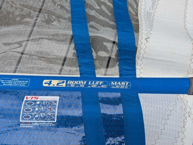Excellent condition on this older but classic North Zeta 4.2m windsurfing sail. Built with legendary North sails quality. A very durable, high performance sail from the golden age of windsurfing. Great for high winds or learning.