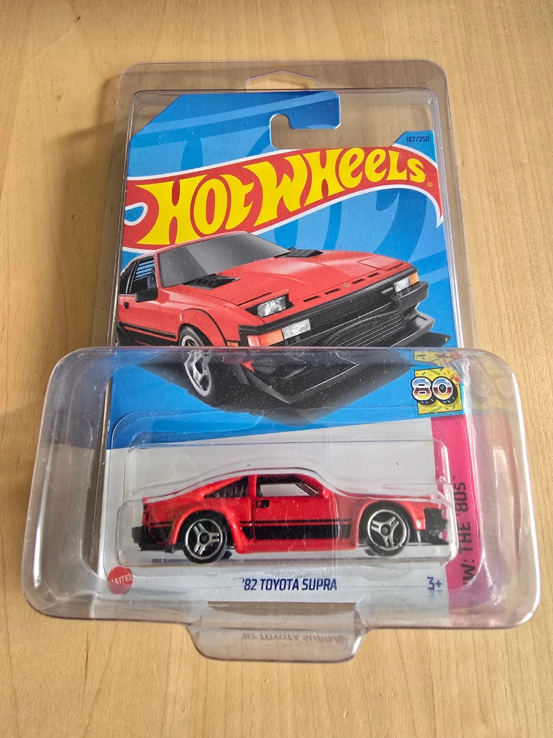 This is a Hot Wheels '82 Toyota Supra diecast car. It's part of the 2023 collection and the 'W: The '80s' series. Recommended for ages 3 and up. In protective case