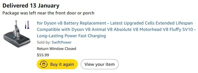 Hi there! I have a brand new, in-box vacuum battery replacement for Dyson V8 series vacuums (Animal, Absolute, Motorhead, Fluffy, SV10). It's a 5000mAh lithium-ion battery with built-in smart protection and an LED power indicator. I purchased it for $55.99 + tax, but I'm selling it for $30. You can pick it up in Richmond Hill (near Holy Trinity School, 11300 Bayview Ave) or on weekdays between 9:00 AM and 4:30 PM in Markham (near 8510 Woodbine Ave). Let me know if you're interested!