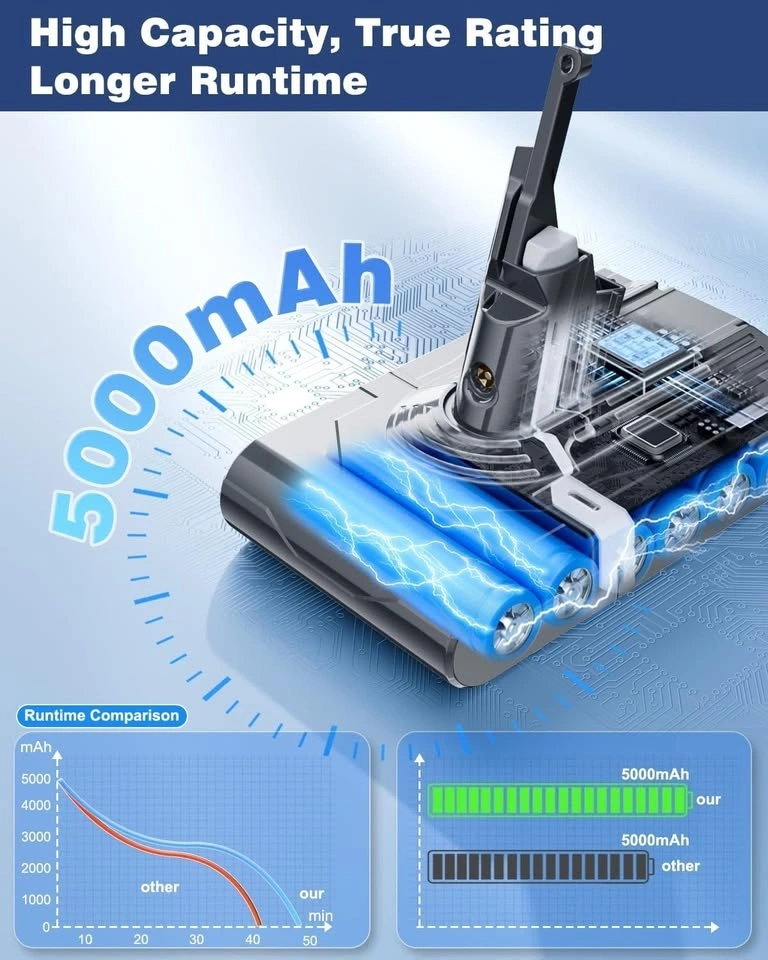 Dyson V8 Replacement Battery – 5000mAh for V8 / SV10