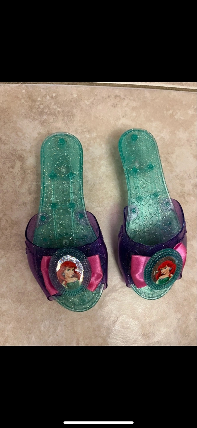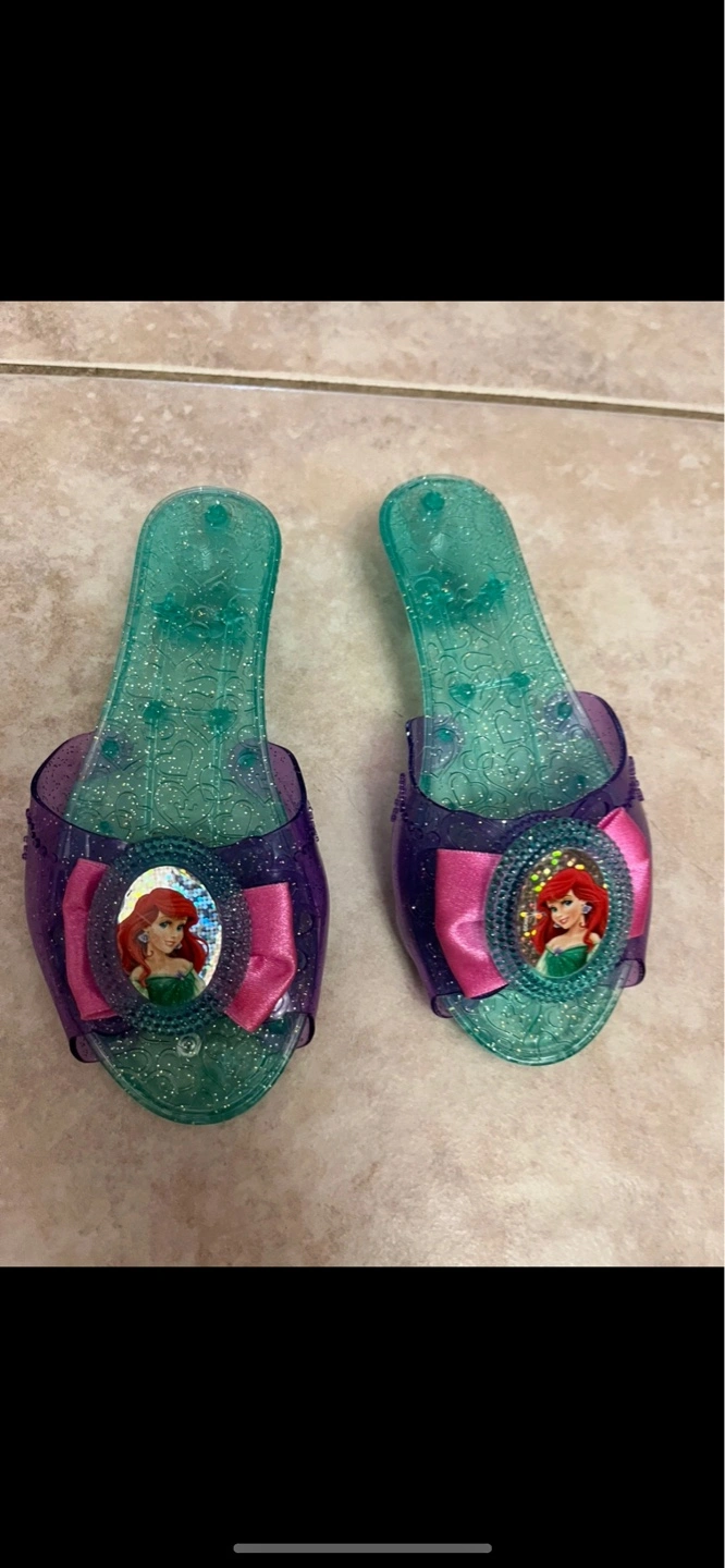 Adorable Little Mermaid slip-on shoes. Clear plastic with glitter accents. Used and excellent condition. Great for 2 or 3 years old. Pick up at 385 Osler street.Cash only.