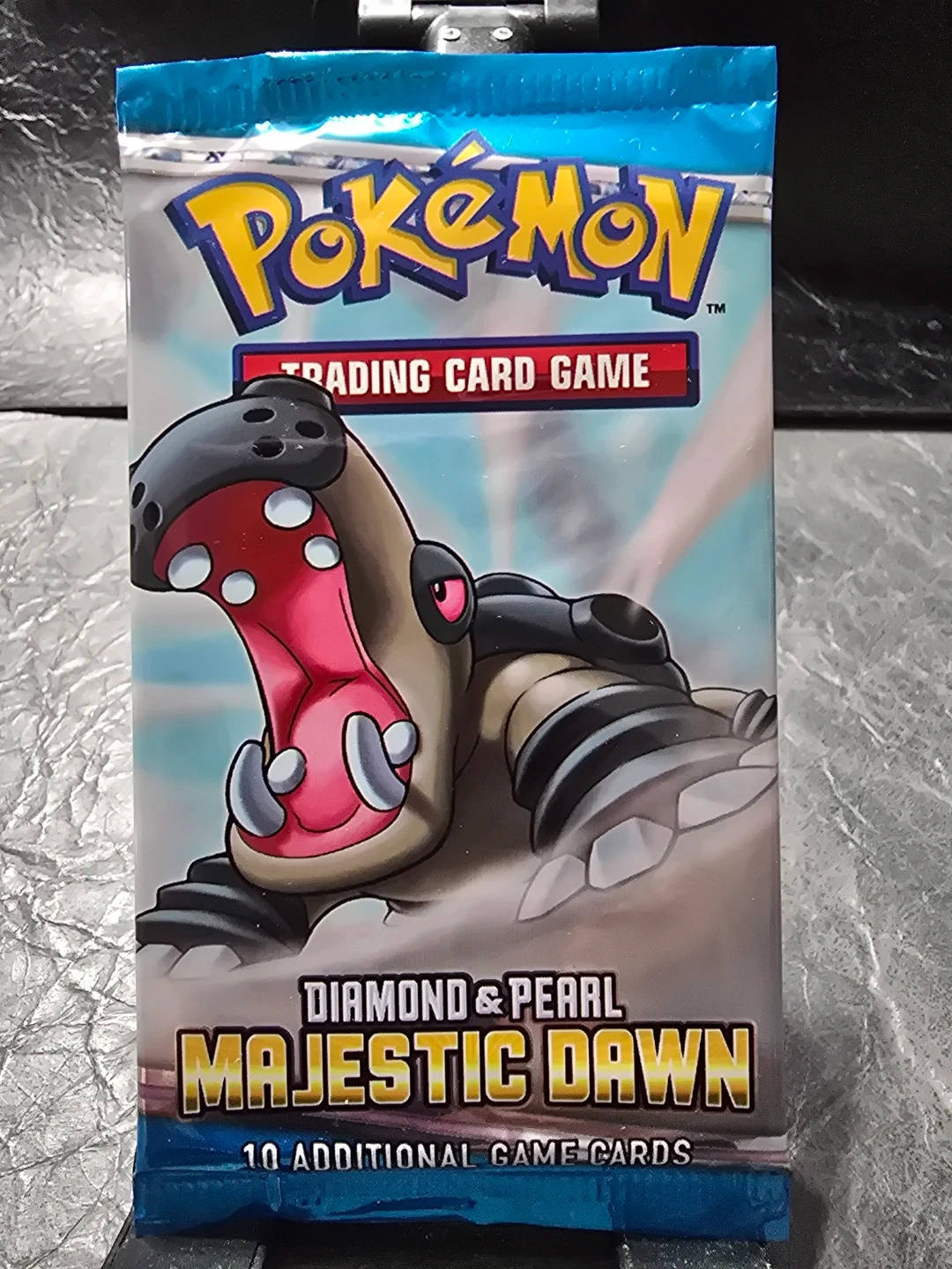 This is a pack of sealed unweighted Pokemon Trading Card Game's Majestic Dawn featuring Hippowdon art. It contains 10 additional game cards. Get ready for an amazing journey and powerful evolutions!