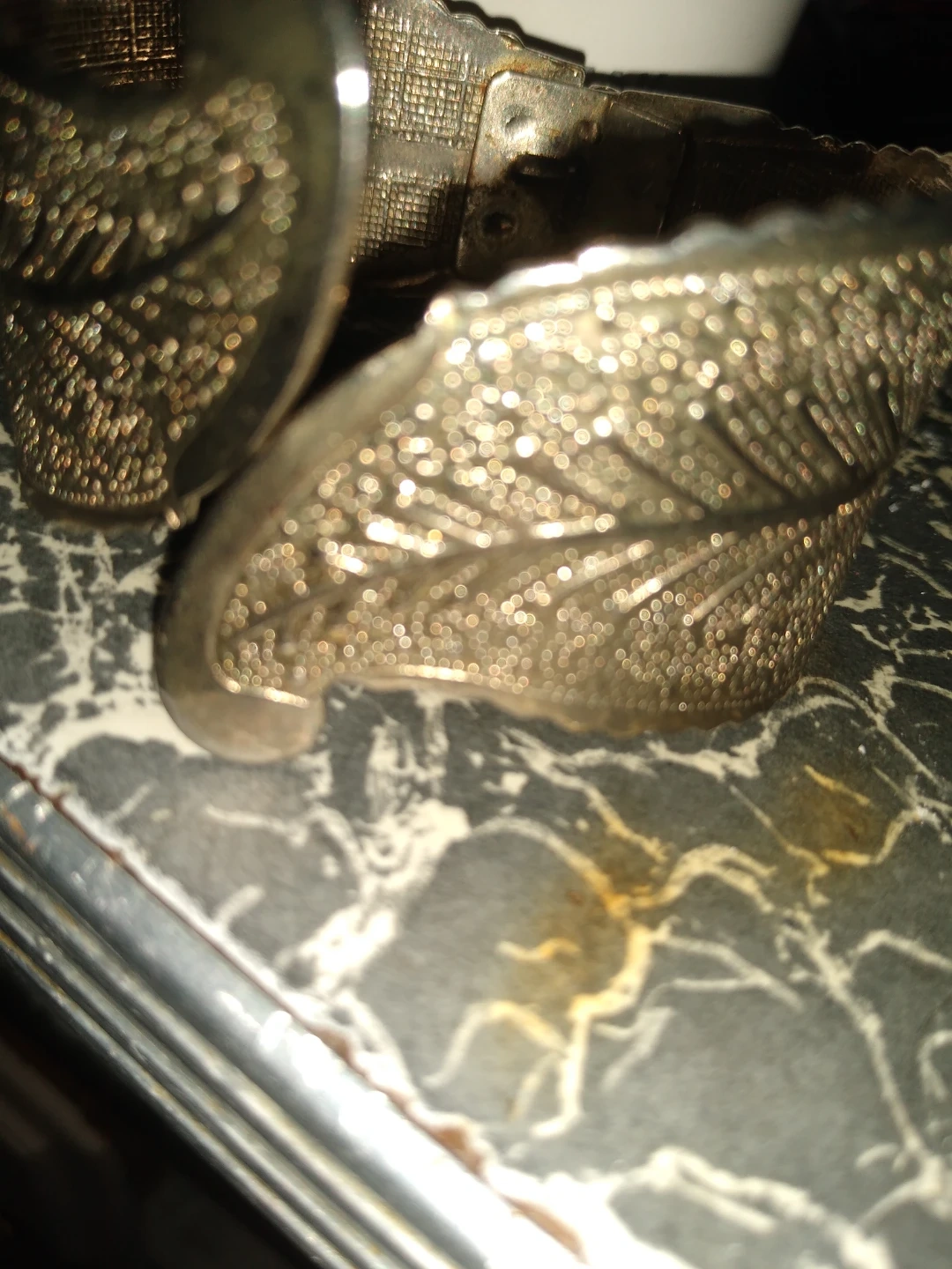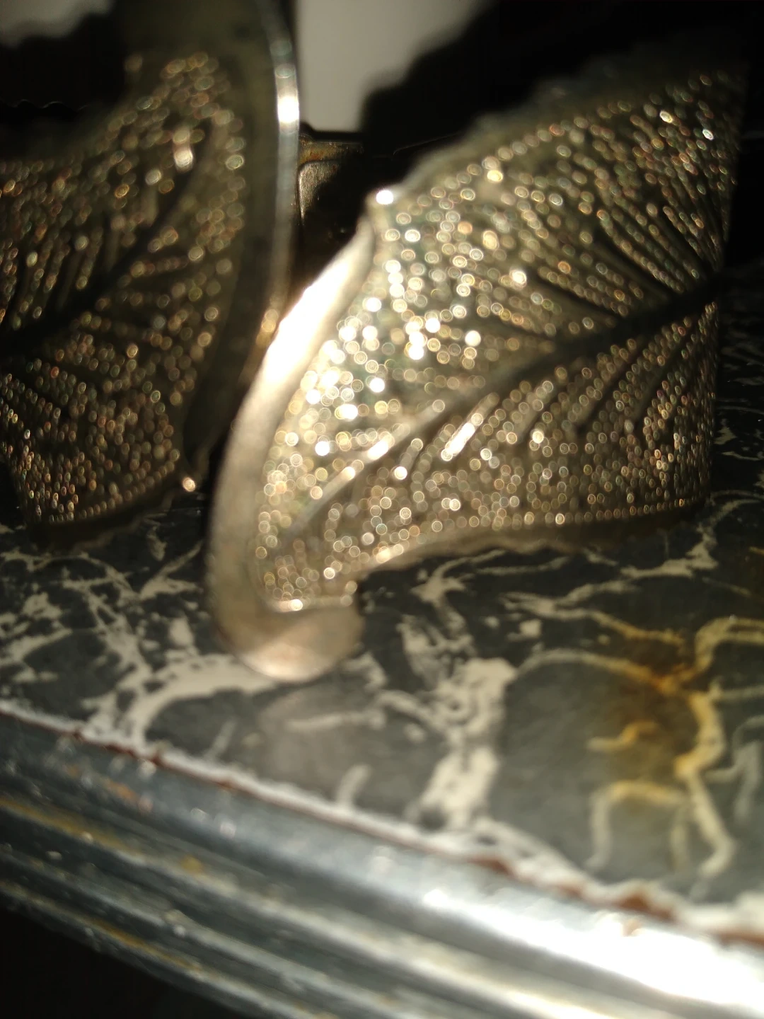 This is a very intricate and pretty cuff bracelet. It has a unique design that makes you stare at it. it's that beautiful. it works both with casual and dressy attire.