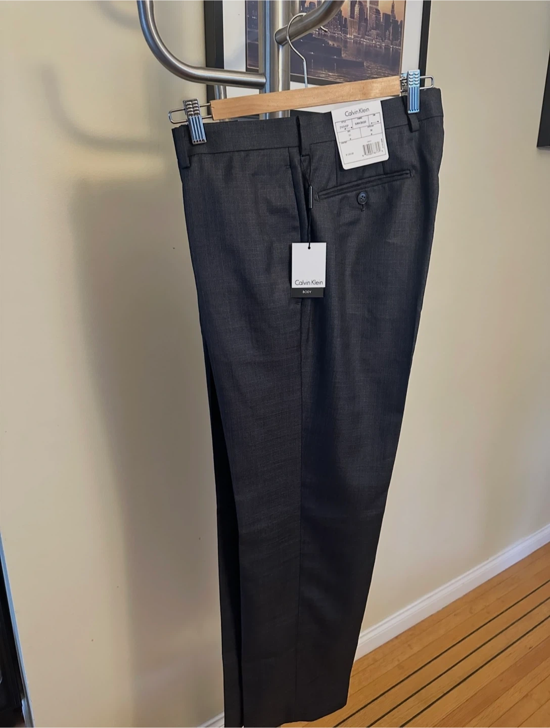Calvin Klein men's suit jacket and pants. Jacket size is 40 regular and pants size is 33 waist with a The fabric is a dark charcoal grey.