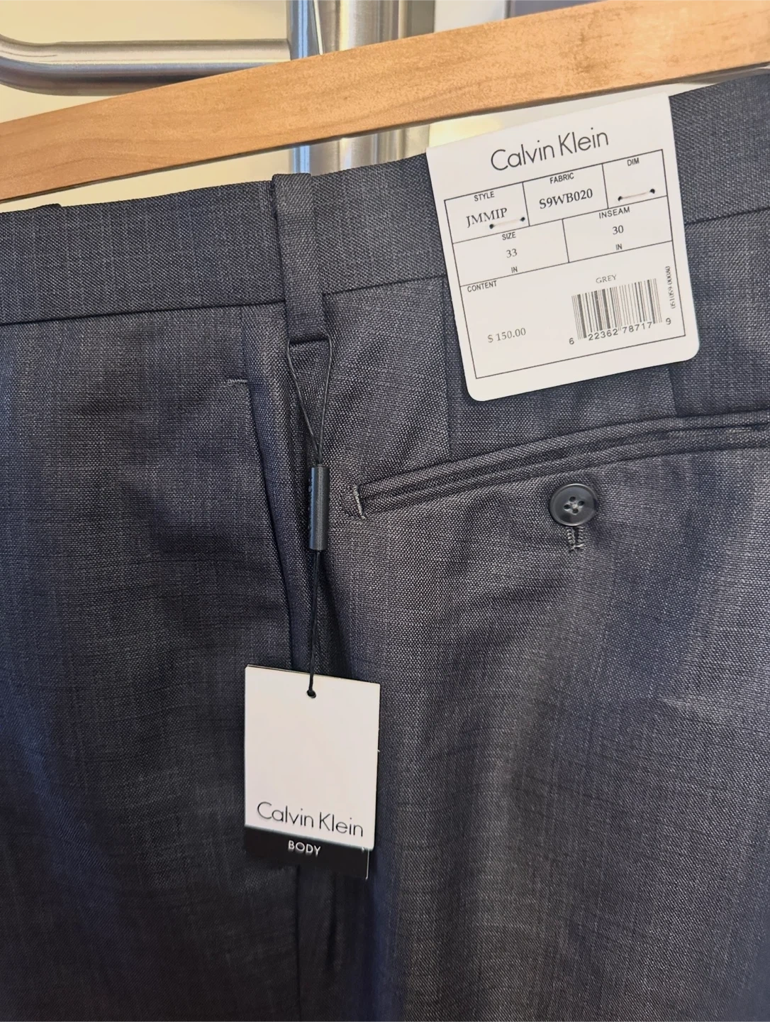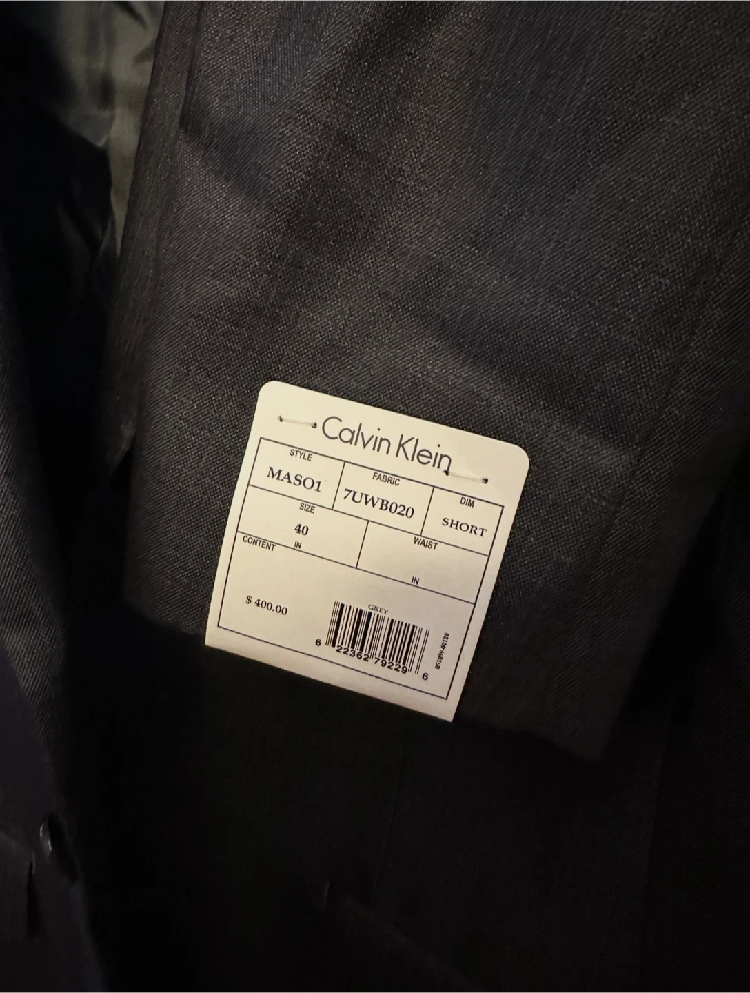Calvin Klein men's suit jacket and pants. Jacket size is 40 regular and pants size is 33 waist with a The fabric is a dark charcoal grey.