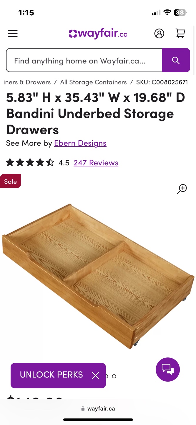 1 / 11 / 1Buy & SellEbern Designs Bandini Underbed Storage DrawersEbern Designs Bandini Underbed Storage Drawers$120Wooden underbed storage drawers. Two compartments. Measures 5.83" H x 35.43" W x 19.68" D.WHERE TO MEET1775 Valley Farm RdView MapSELLERverifiedJoelCity Centre972 reviews0 chats·0 favorites·21 viewsSEND CHAT TO SELLERHi Joel! I’m interested in your listing.Hi Joel! I’m interested in your listing.Get the Karrot app to chatSign In to chat