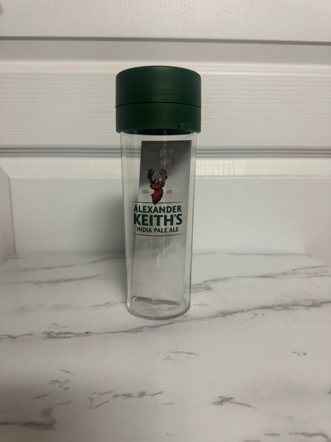 This Alexander Keith's Infuser is made of clear plastic with the Alexander Keith's logo. Includes instructions for use. Can use to infuse a variety of beverages.