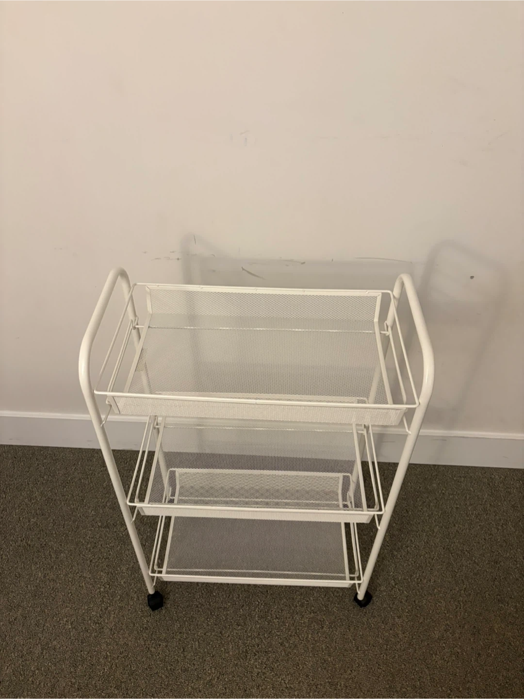 White 3-Tier Mesh Rolling Cart