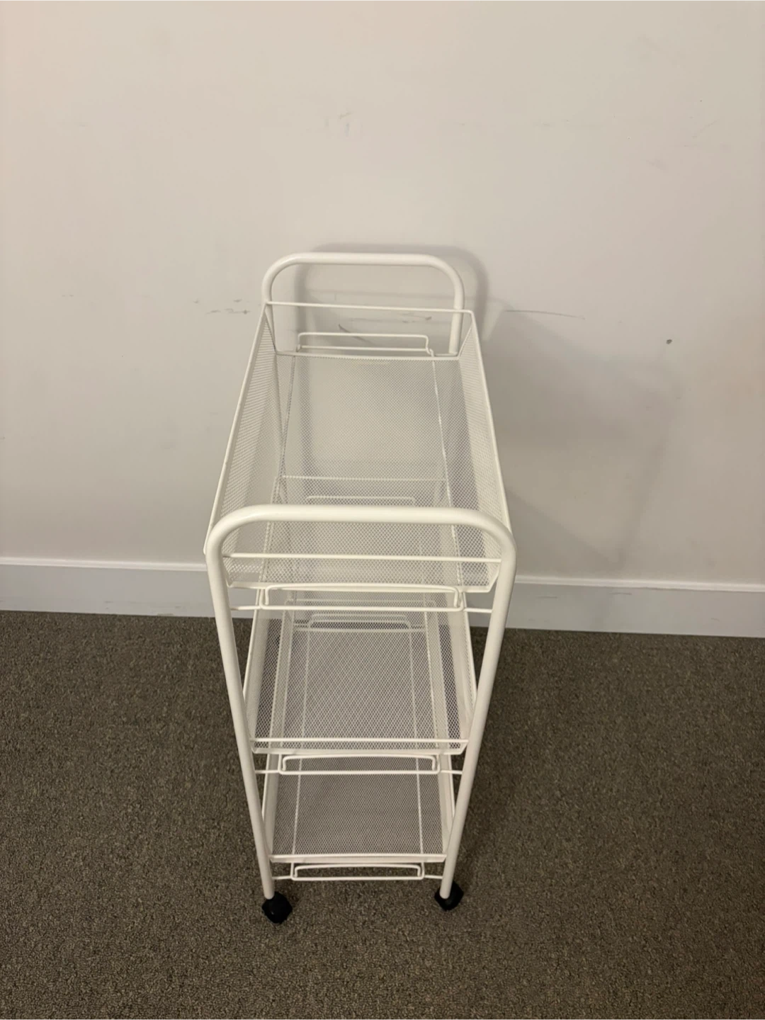 White 3-Tier Mesh Rolling Cart