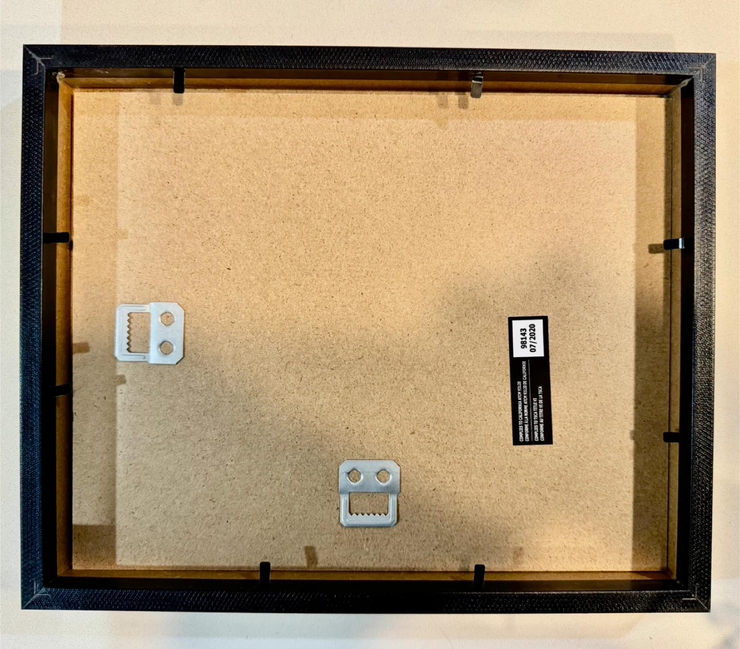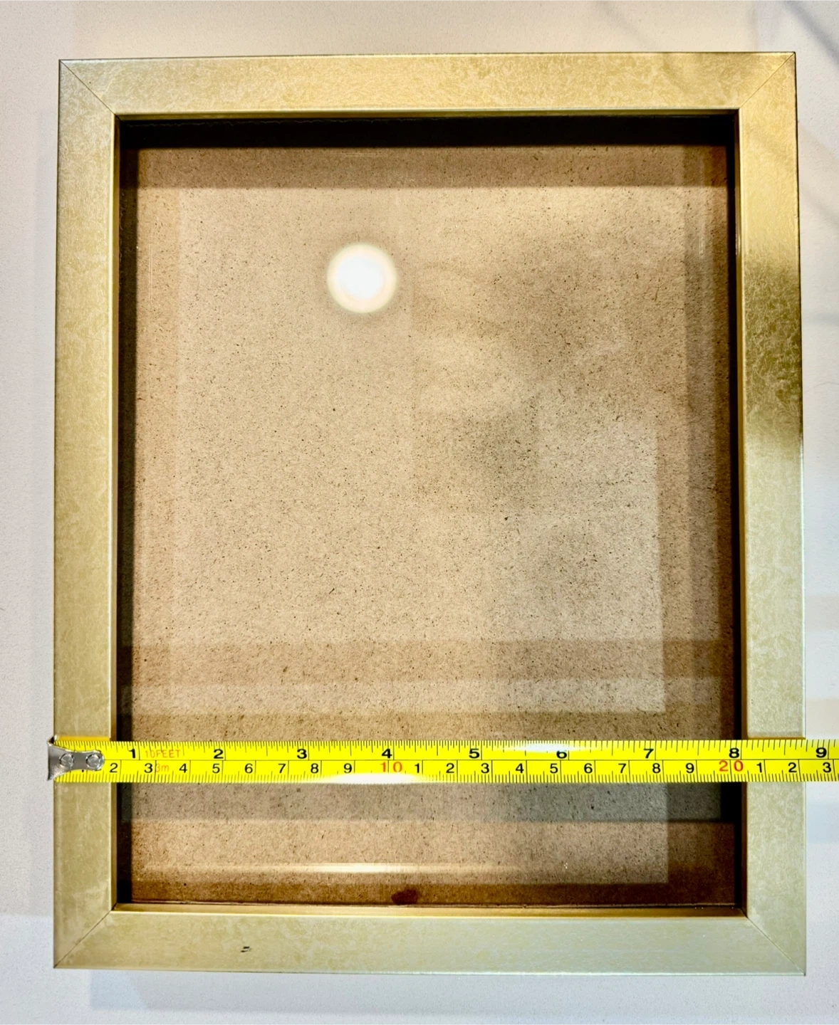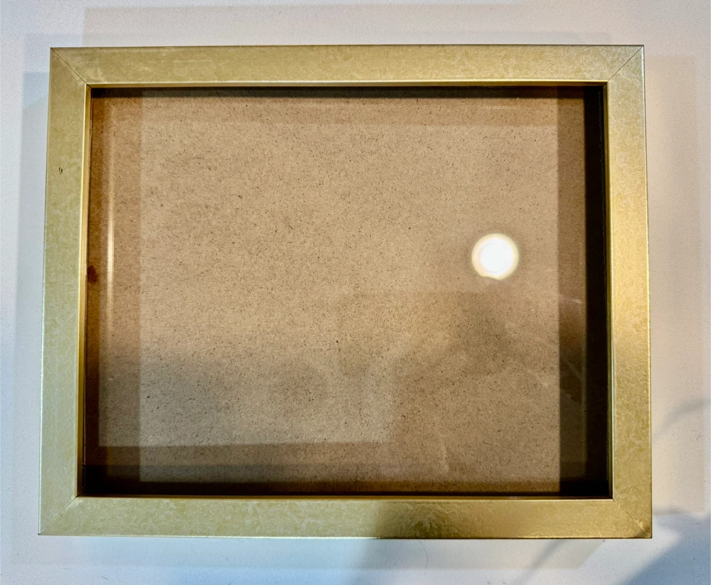 This gold photo frame is for 8x10 inch pictures. It's made of metal. A great way to display your favourite memories!