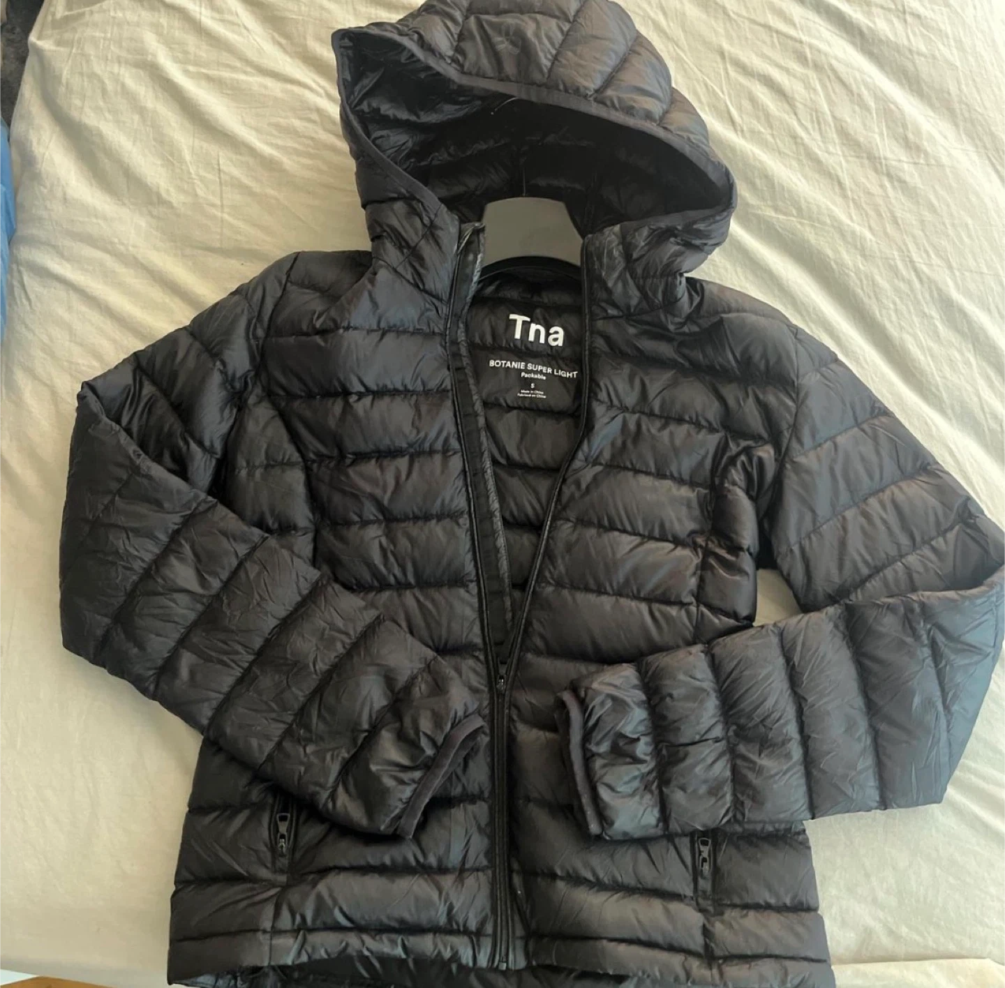 Buy & SellTna Botanie Super Light Packable Puffer Jacket - Black - Size STna Botanie Super Light Packable Puffer Jacket - Black - Size S$45This is a black Tna Botanie Super Light puffer jacket. It's a packable design with a hood. Size is small.ConditionLike newSizeSmallBrandTnaWHERE TO MEETCheck LocationView MapSELLERverifiedrachelBay Street Corridor41127 reviews0 chats·0 favorites·11 viewsSEND CHAT TO SELLERHi rachel! I’m interested in your listing.Hi rachel! I’m interested in your listing.Get the Karrot app to chatSign In to chat