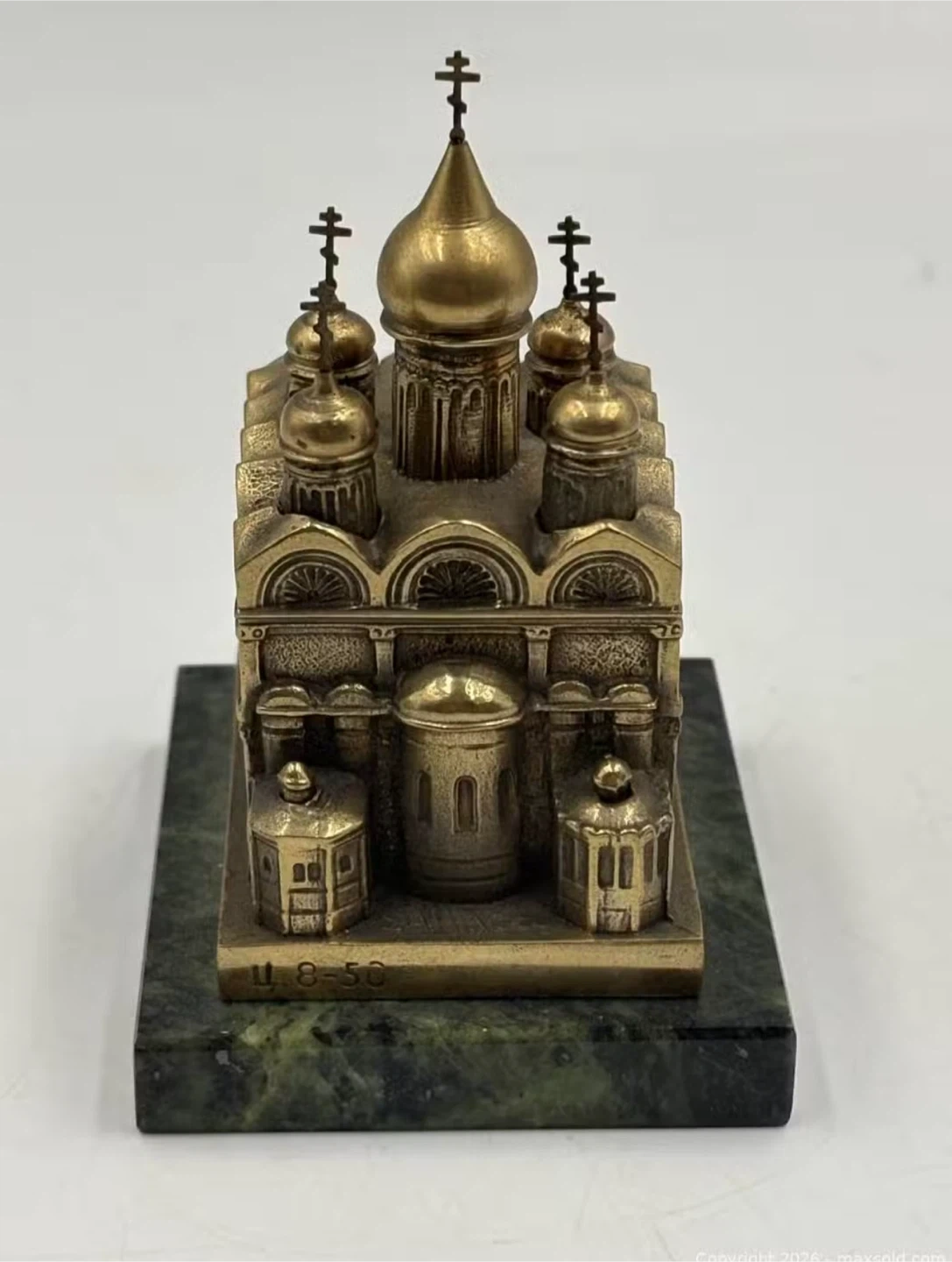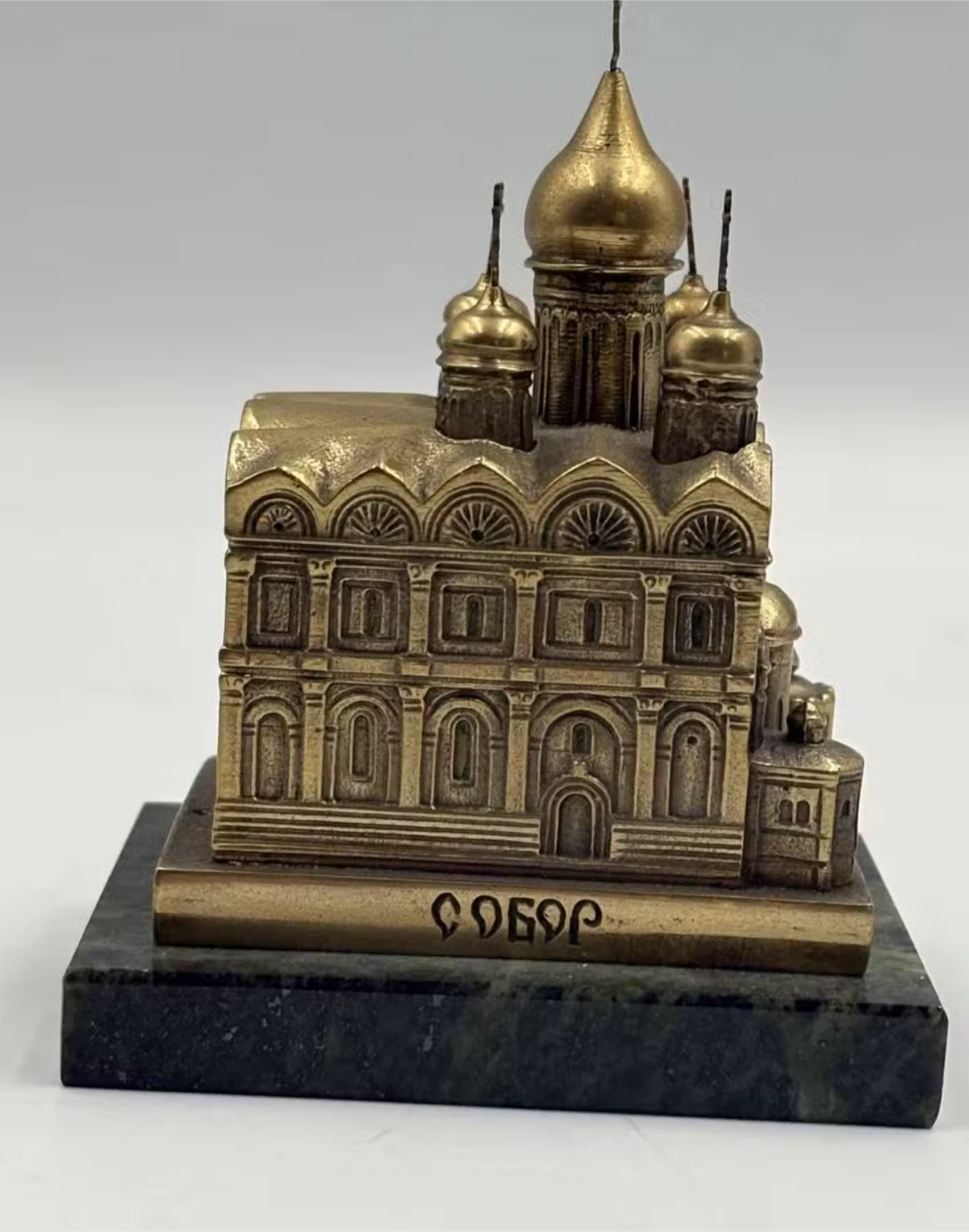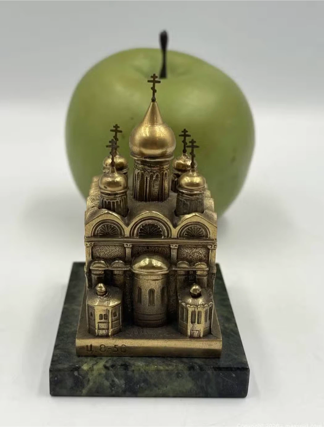Brass on Marble base Paperweight Souvenir Building of the Cathedral of the Archangel in Moscow.