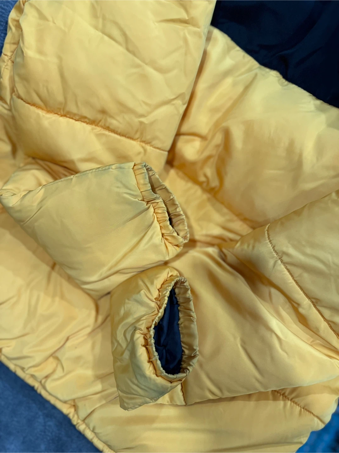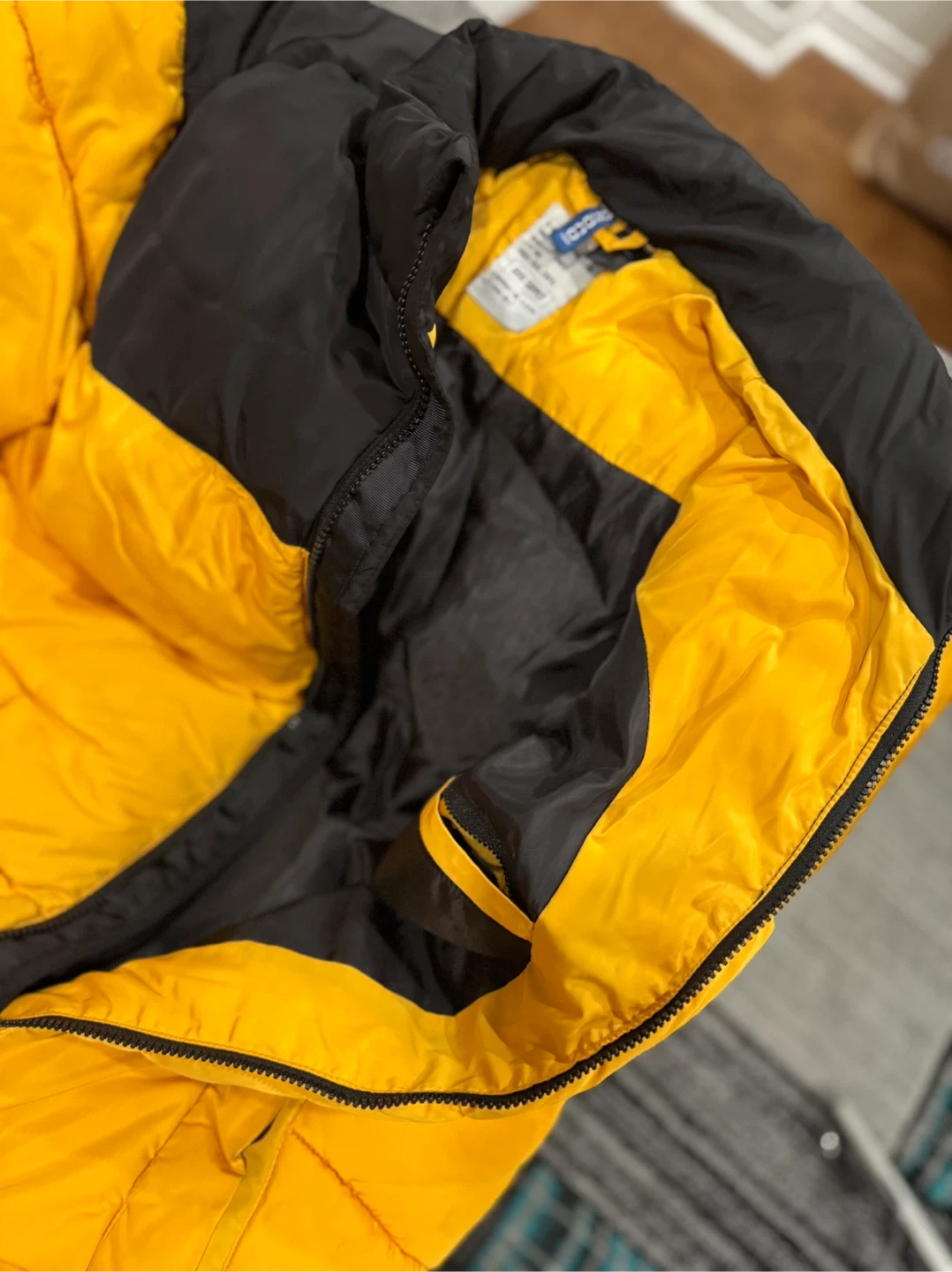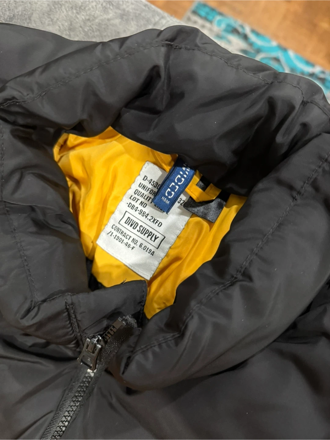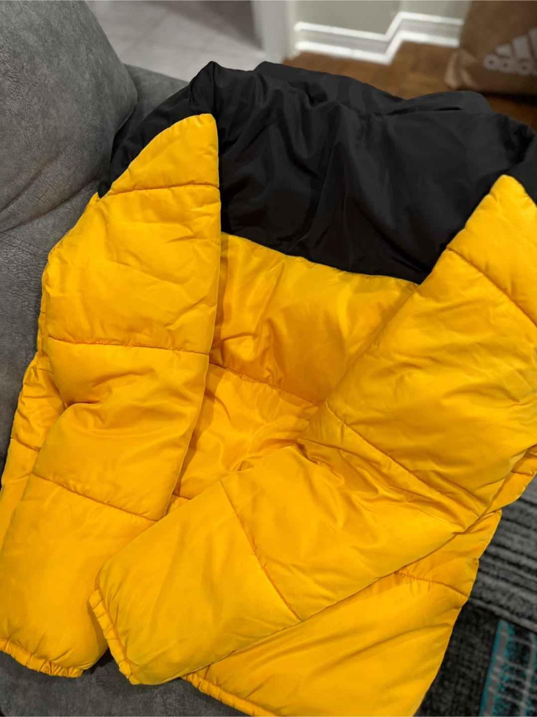 This is a stylish puffer jacket from Divided by H&M. It features a bold black and yellow colour block design. The jacket is insulated for warmth, perfect for cooler weather! One Pocket inside jacket.