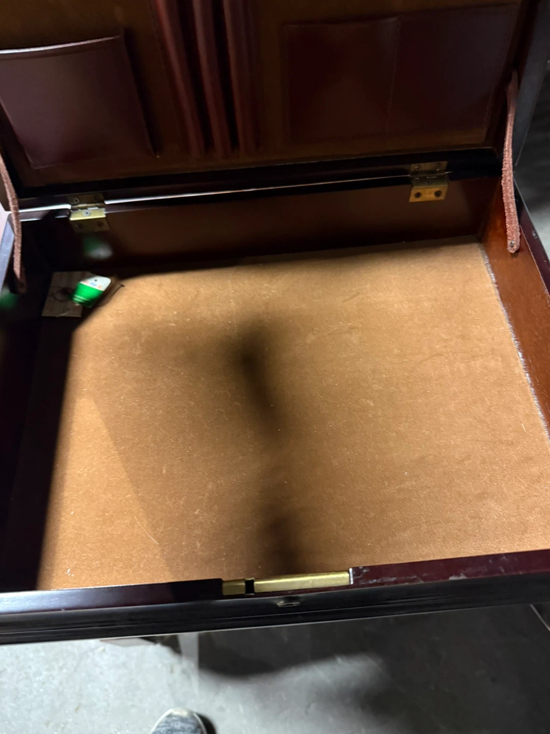 Selling a vintage wooden secretary suitcase It has a beautiful dark brown finish and a unique design. The desk features multiple compartments and slots for organizing your documents and stationery. Perfect for adding a touch of classic elegance to your home office!