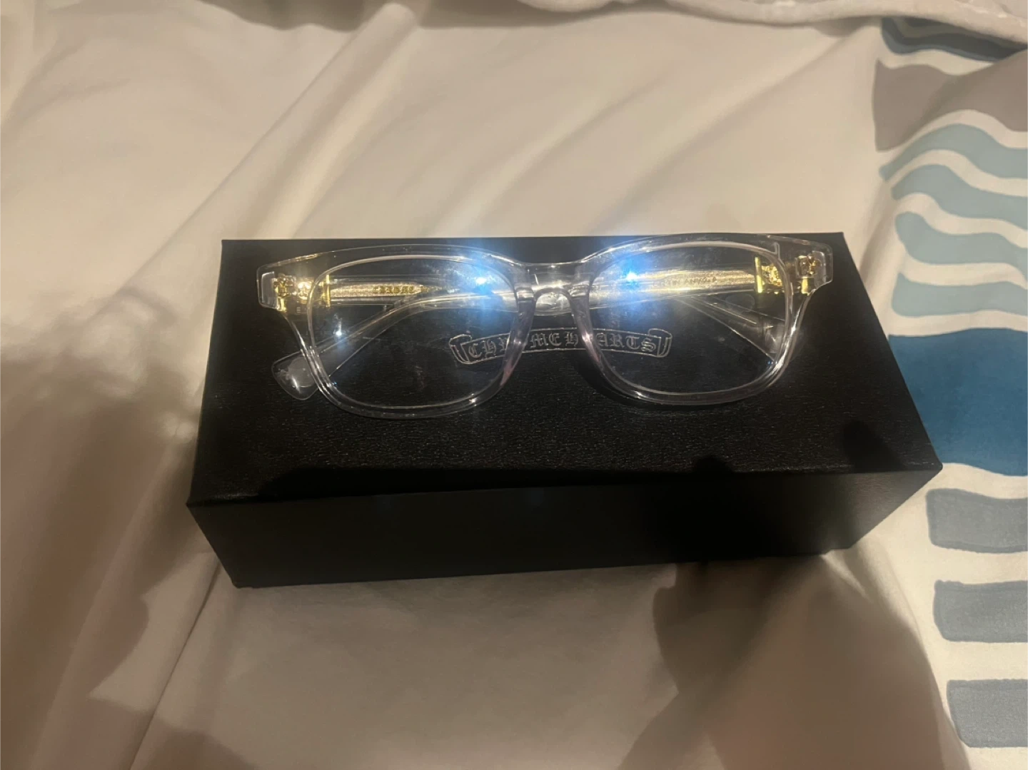 Buy & SellChrome Hearts GlassesChrome Hearts Glasses$270Stylish clear framed glasses with gold accents. Comes with original Chrome Hearts box.ConditionNewSizeNo size BrandChrome HeartsWHERE TO MEET13882 Warden Ave.View MapSELLERJadenBallantrae00 reviews0 chats·0 favorites·7 viewsSEND CHAT TO SELLERHi Jaden! I’m interested in your listing.Hi Jaden! I’m interested in your listing.Get the Karrot app to chatSign In to chat