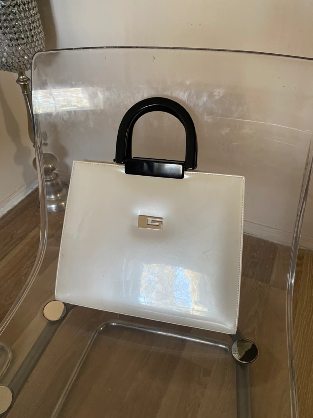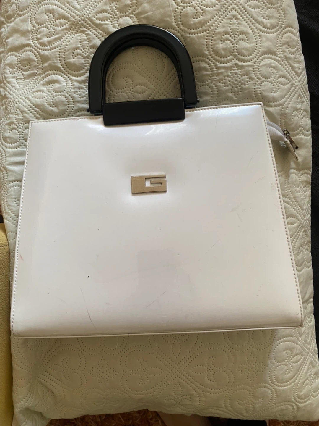 White guess Patent Handbag with Black Handles