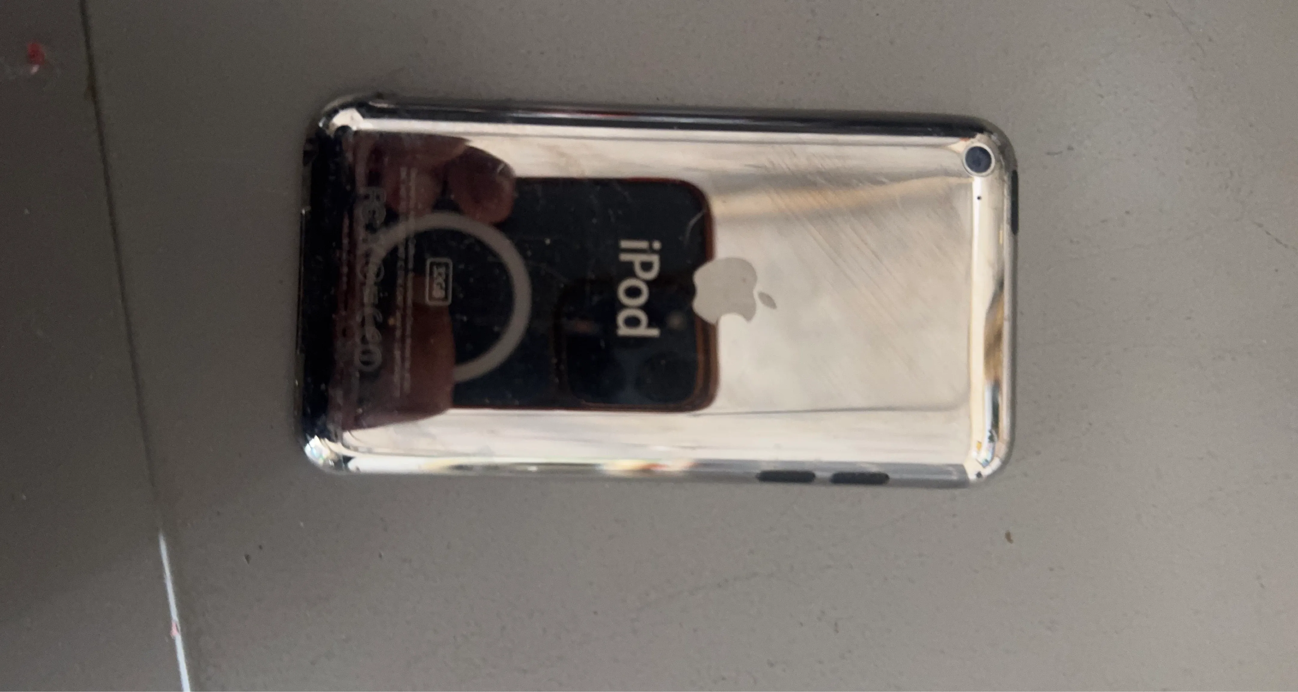 This is an Apple iPod Touch with 32GB of storage. It features a shiny chrome back and a compact design. The iPod Touch is a portable music and media player.