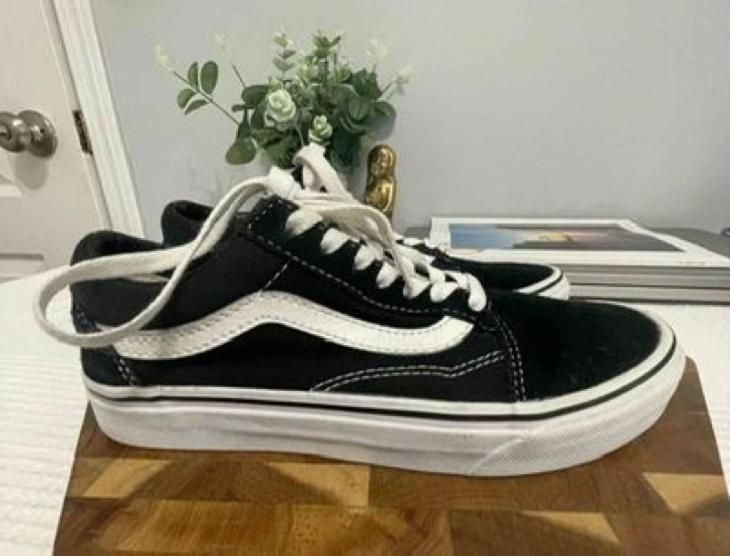 Black and white Vans Old Skool sneakers, size 6 women's. Barely worn