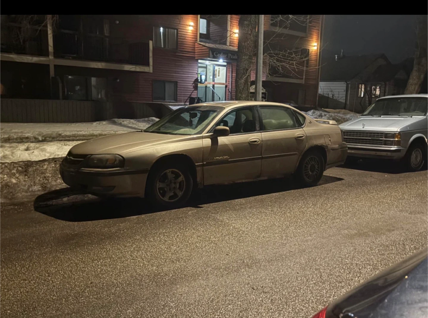 Tan Chevy Impala LS. Has light Grey leather interior. Some body damage on drivers side under the door as the panel came off. Car is dirty from being outside but was recently washed before the cold hit again as well as cleaned inside, but it will be dirty again as it’s my daily driver. It’s been a good reliable car and she’s started every time even with the wicked cold snap we got. She’s got some rust and some small minor issues that are easy to fix, the Engine is perfectly fine so is transmission, drives and shifts perfectly fine. Check engine light is on due to an o2 sensor, and its needs an oil change and a passenger side wiper blade, but other then that runs and drives like a charm she’s not let me down yet for a 22 year old car it’s fun, very gas efficient just needs a bit of cosmetic TLC or would be a great starter car for someone just leaving to drive. It will also come with a AM/FM transmitter to connect to your phone to play music or to receive phone calls, I have also put work into it like very recently replaced the brakes all around, fixed the wheel bearings, as well as the exhaust as it had bolt snap off. Also had to get a tire replaced as the previous owner didn’t let me know or didn’t know themselves but it’s all been fixed, kms are 211070. Asking $ 2000 or may consider trades on something manual, or that has command start and Bluetooth just no trucks or vans please. serious inquiries only please!!.