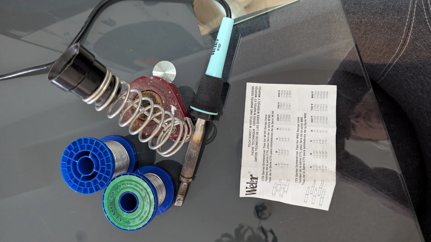 This Weller W100 soldering iron comes with two spools of solder and a stand. It's a great tool for electronics repair or DIY projects. Was used for making stained glass.