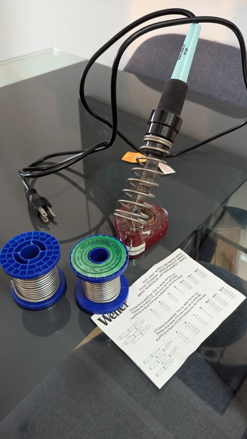 This Weller W100 soldering iron comes with two spools of solder and a stand. It's a great tool for electronics repair or DIY projects. Was used for making stained glass.