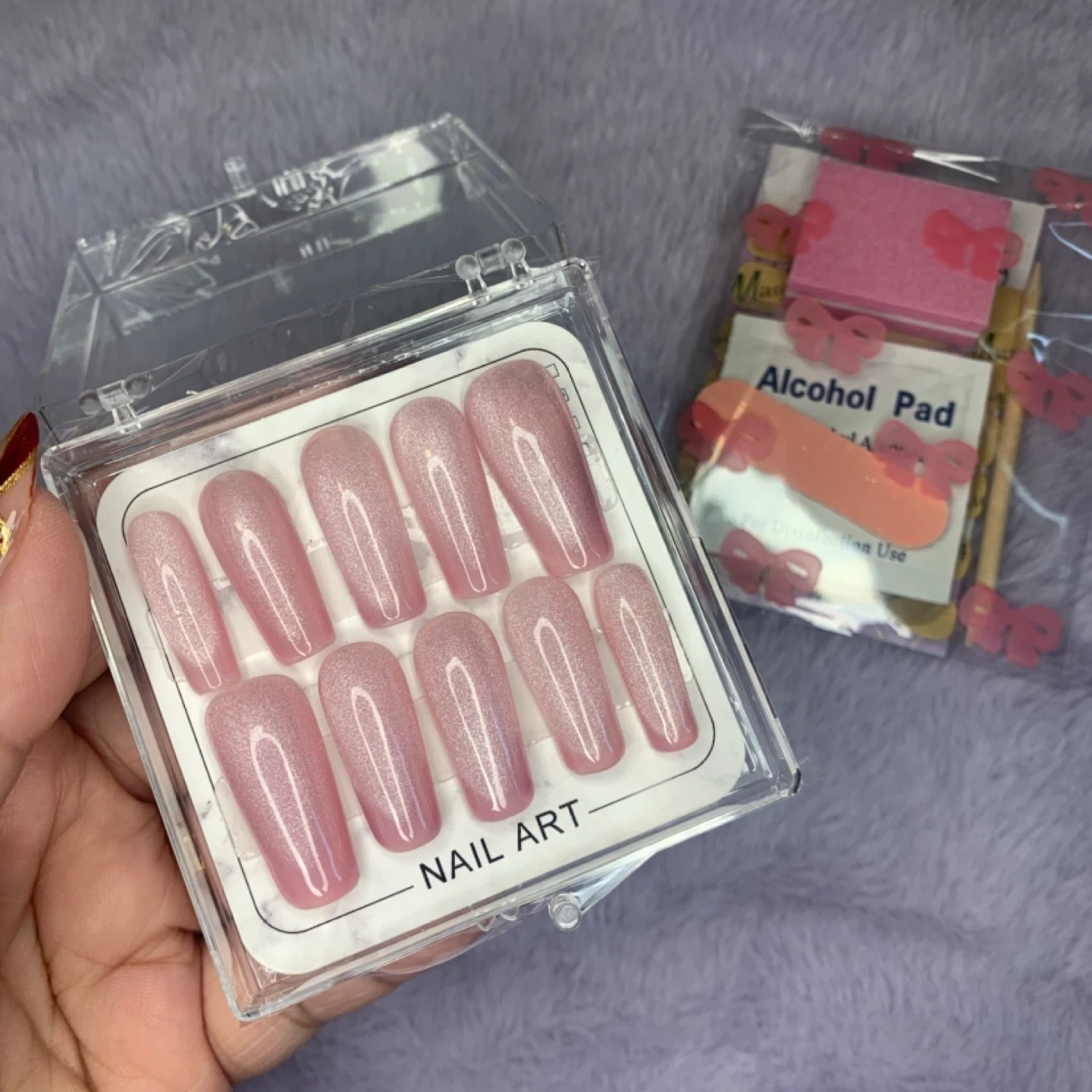 Brand new set of press-on nails! Comes with everything you need for application, including an alcohol pad, nail file, and wooden stick