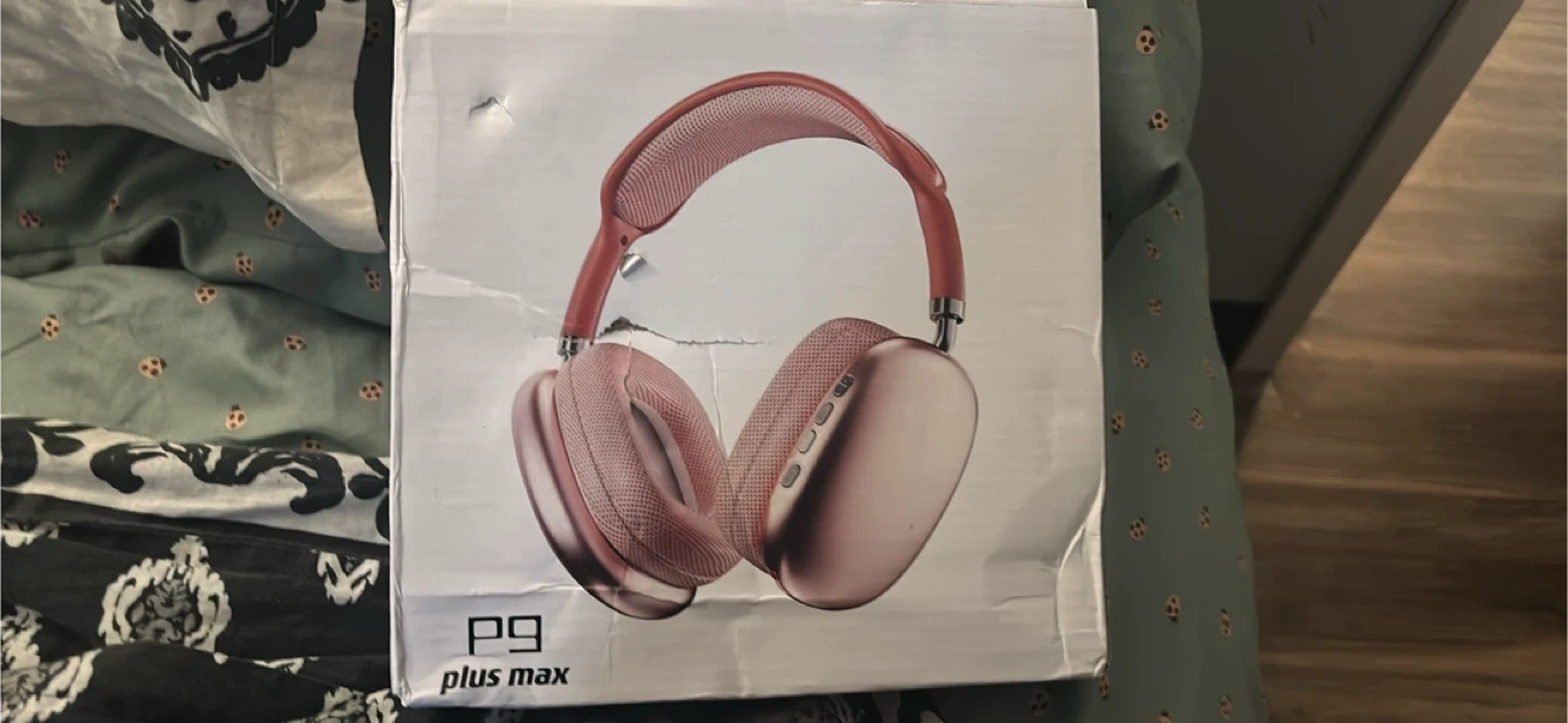 These P9 Plus Max headphones are a stylish rose gold color. They feature advanced audio encoding. Designed for immersive sound.