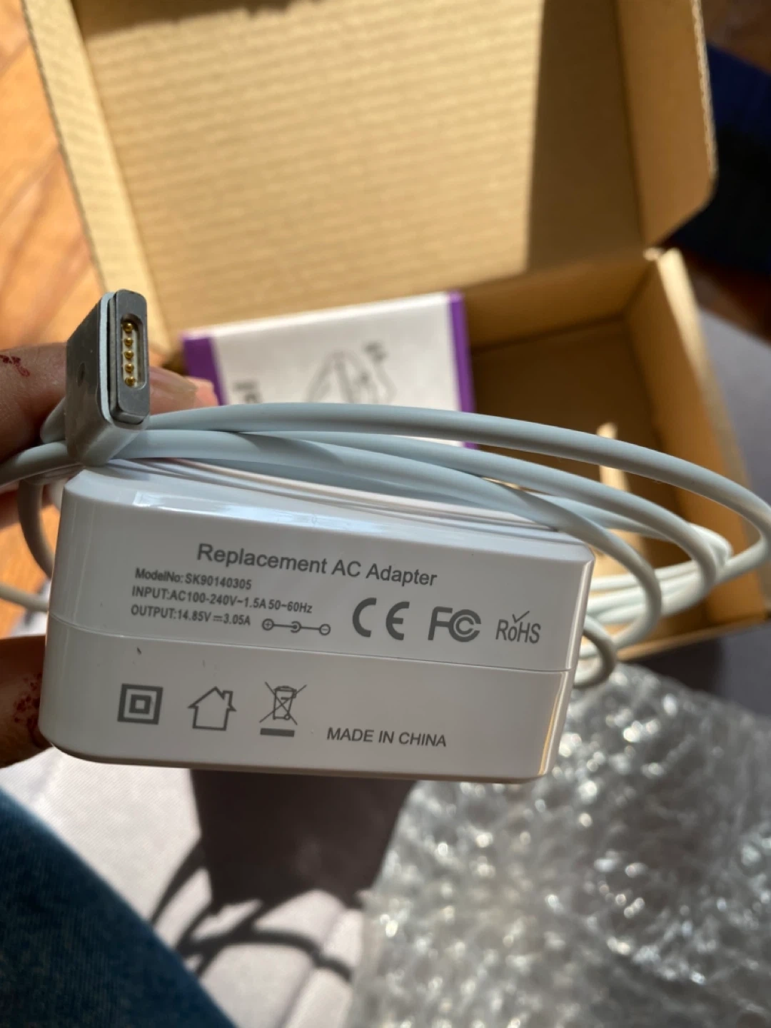 Buy & SellReplacement AC Adapter Charger SK90140305Replacement AC Adapter Charger SK90140305$20Replacement AC adapter with model number SK90140305. Input: AC100-240V~1.5A 50-60Hz. Output: 14.85V === 3.05A. Includes original box and manual.BrandAppleWHERE TO MEETCheck LocationView MapSELLERverifiedaziMarkham E1214 reviews0 chats·0 favorites·3 viewsSEND CHAT TO SELLERHi azi! I’m interested in your listing.Hi azi! I’m interested in your listing.Get the Karrot app to chatSign In to chat
