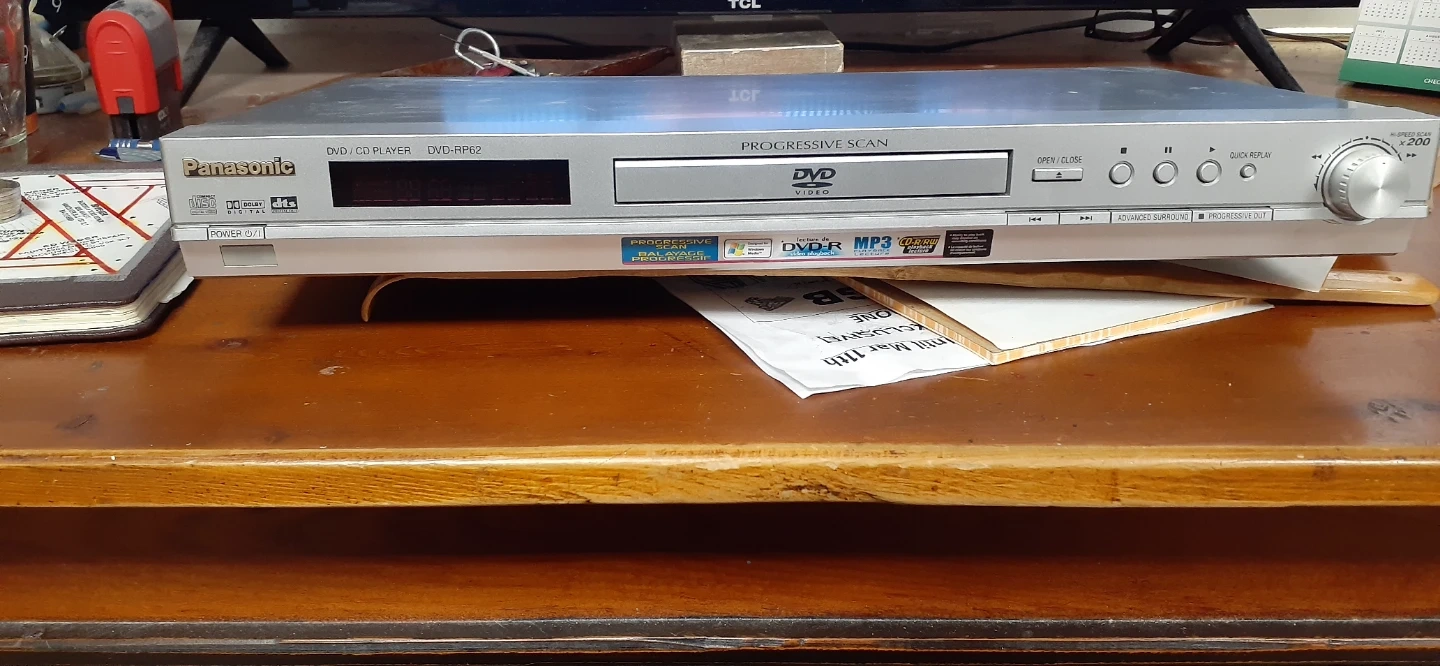 This is a Panasonic DVD/CD player with progressive scan technology. It plays DVD-R and MP3 formats. It also has advanced surround sound capabilities.