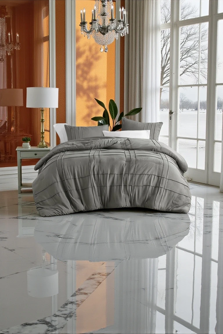 Brand new slate 3-piece comforter set (comforter + 2 pillowcases). Clean, simple, zero drama.