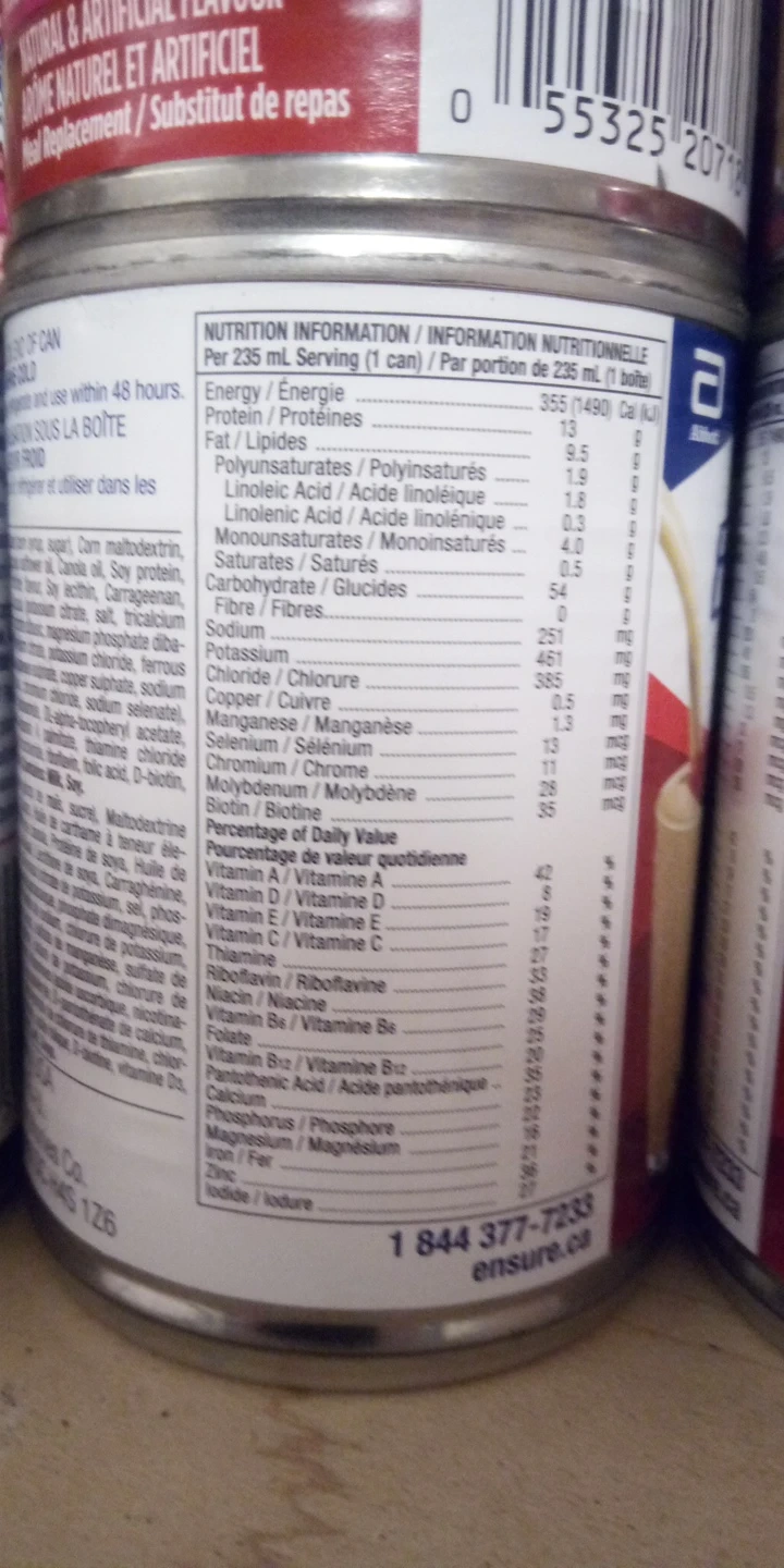 ENSURE PLUS 8 cases for 80$