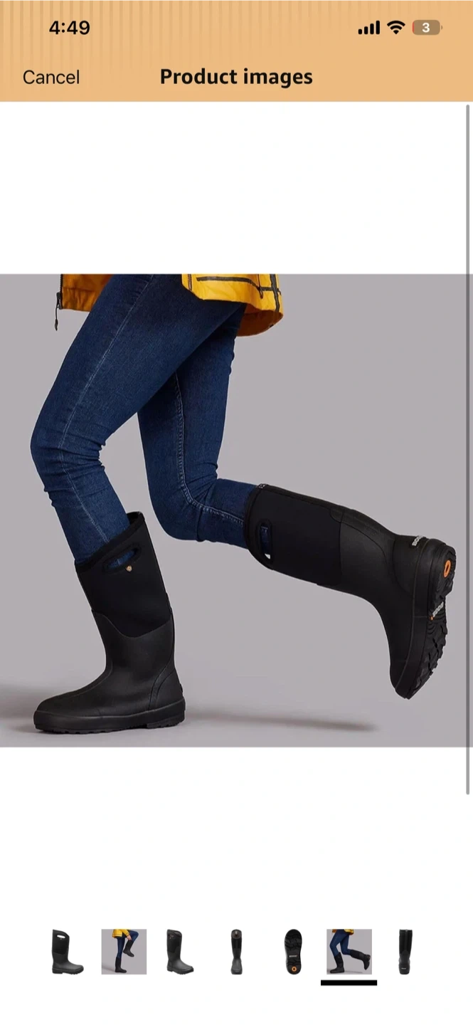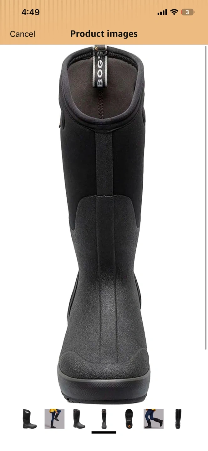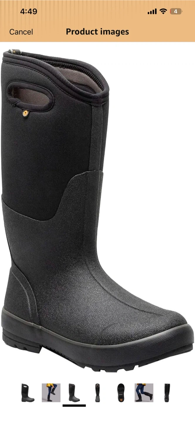 These Bogs boots are black and waterproof. They feature neoprene insulation for warmth. Great for staying dry and comfortable in wet weather!