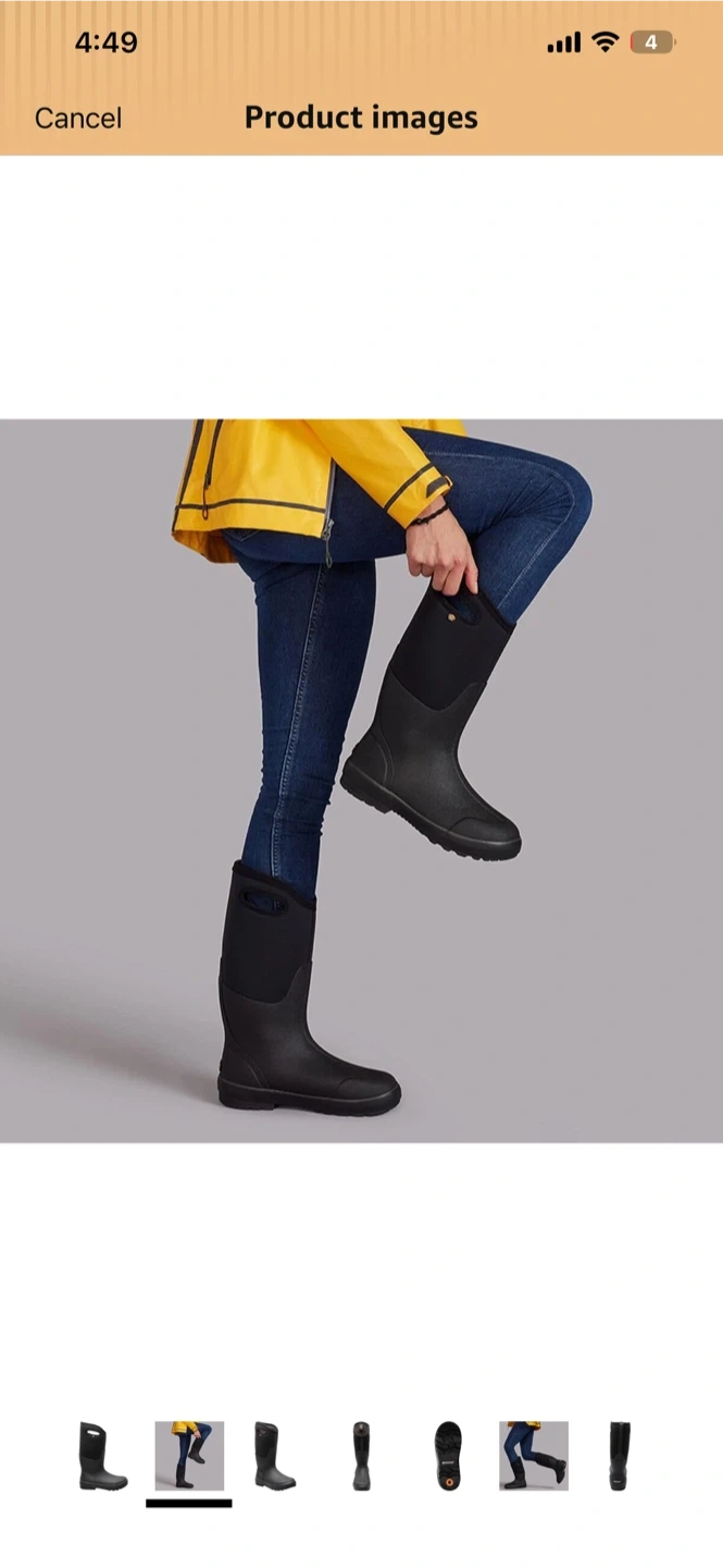 These Bogs boots are black and waterproof. They feature neoprene insulation for warmth. Great for staying dry and comfortable in wet weather!